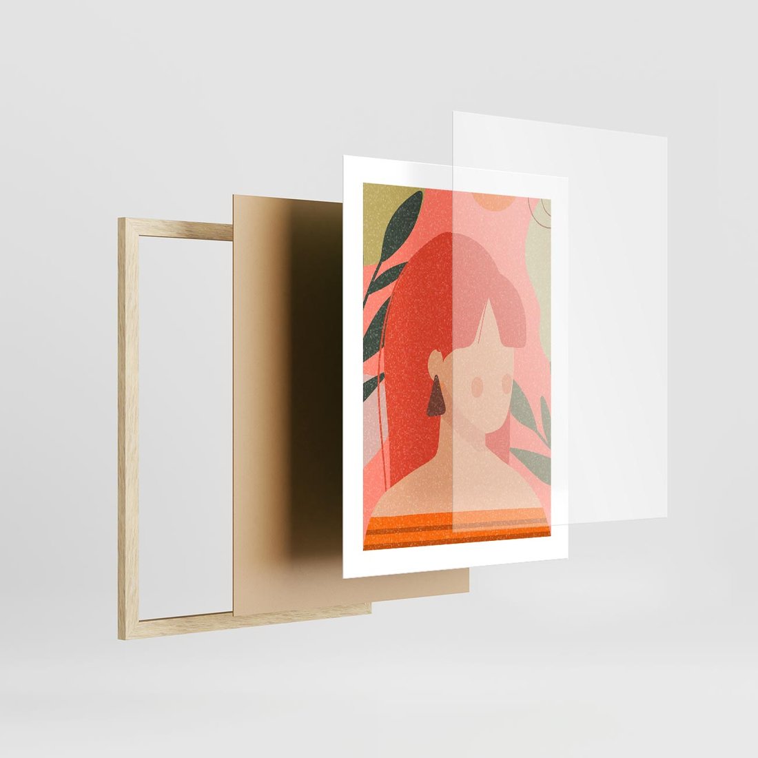 Plakat w ramie 30x40 - Kobieca Refleksja - nowoczesny plakat, styl retro - rama drewno
