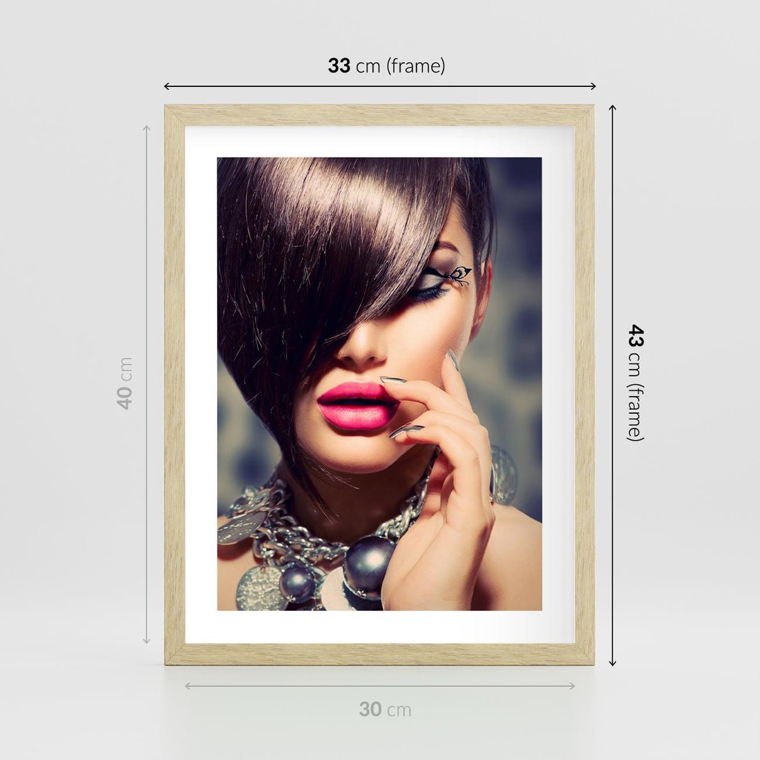 Plakat w ramie 30x40 - Kobiecy urok w makijażu i fryzurze - makijaż, fryzura - rama drewno