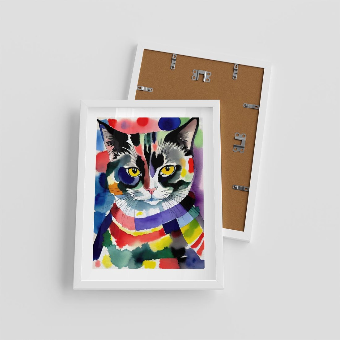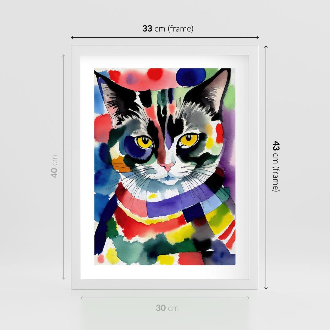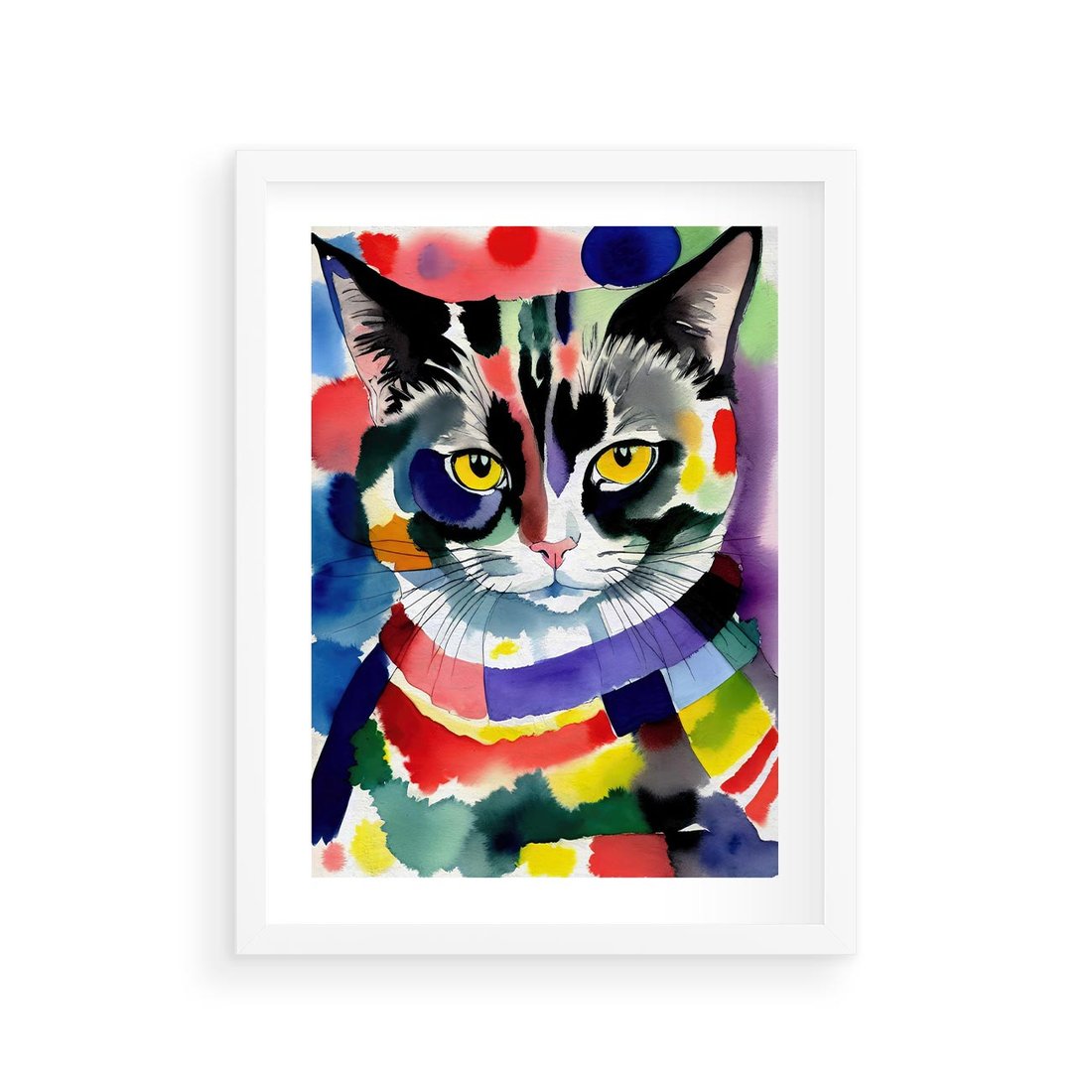 Plakat w ramie 30x40 - Koci Przyjaciel - abstrakcyjny obraz, akwarela - rama biała