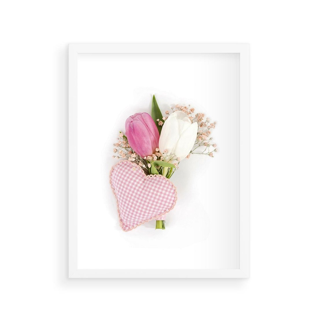 Plakat w ramie 30x40 - Kolorowa Harmonia - kwiaty, bukiet - rama biała