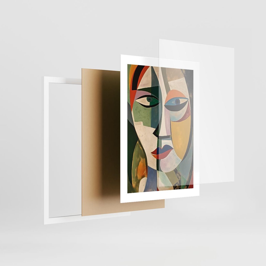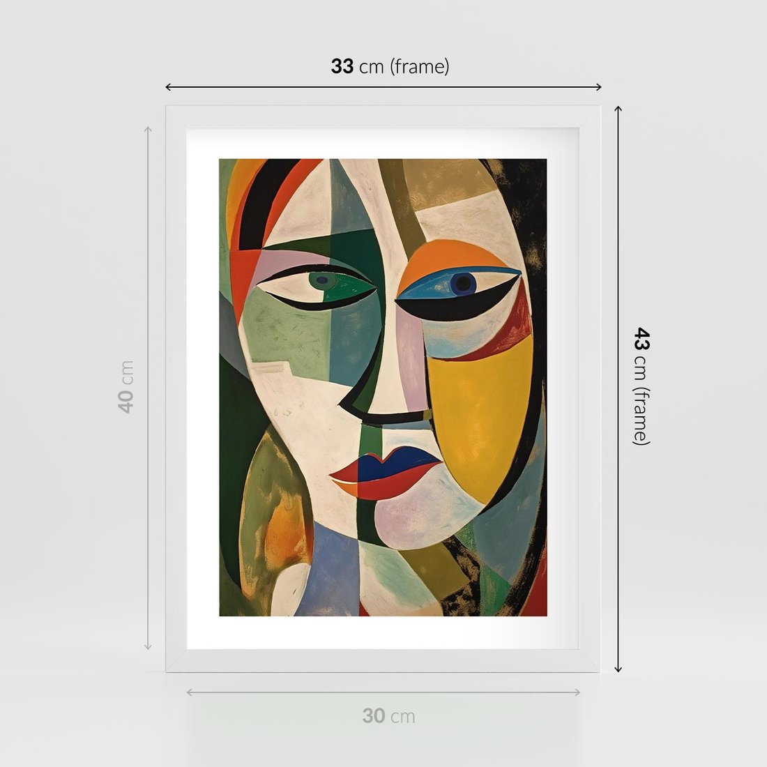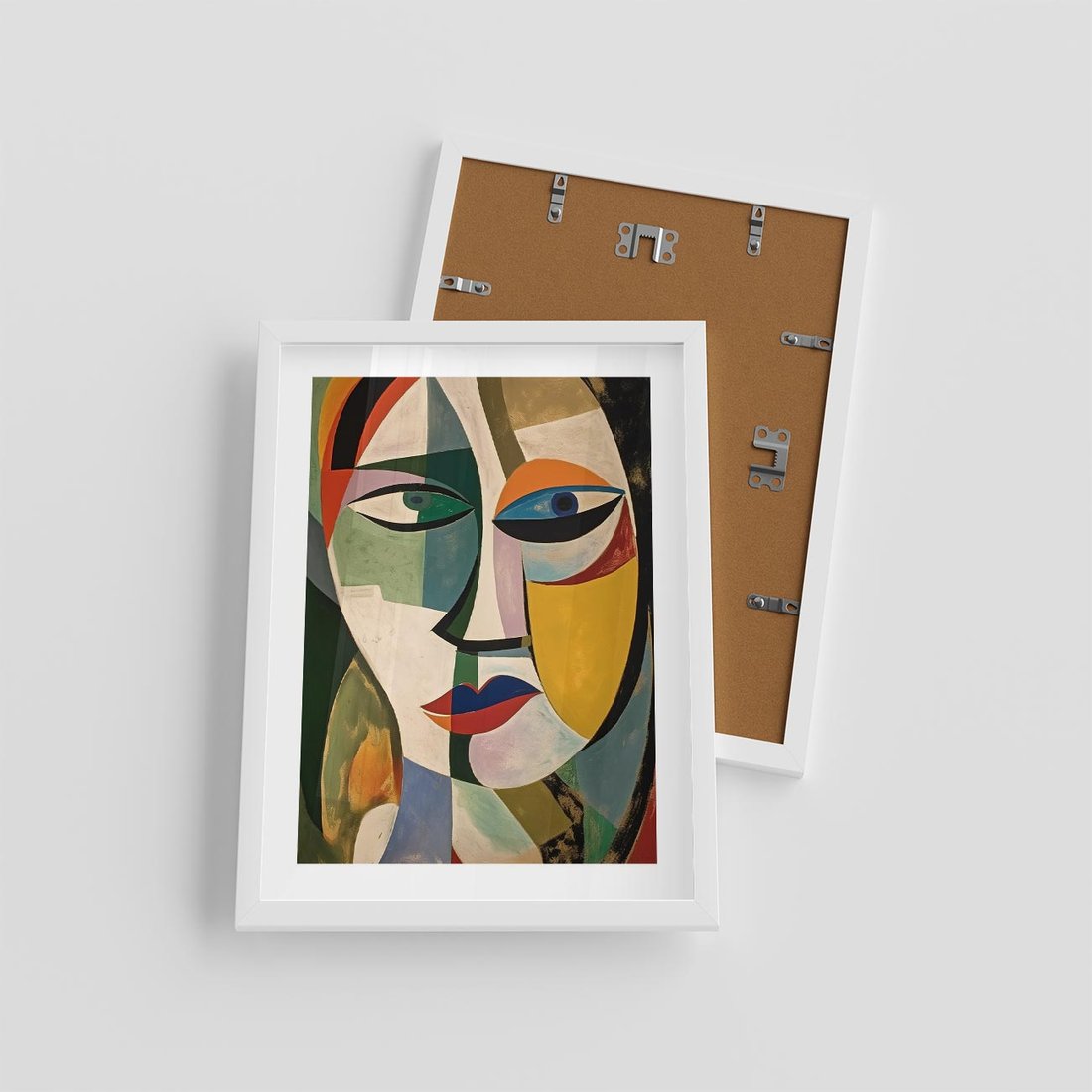Ten abstrakcyjny obraz olejny przedstawia twarz kobiety w stylu nawiązującym do Picassa. Żywe i ekspresyjne kolory tworzą dynamiczną kompozycję, ukazującą emocje i indywidualność. To unikalne dzieło sztuki wyróżni się w każdym wnętrzu.