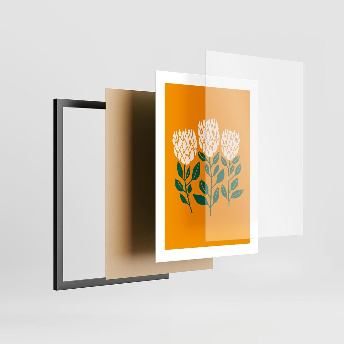 Ten nowoczesny plakat prezentuje abstrakcyjną kwiatową kompozycję na intensywnym, żółtym tle. Sztuka ta wprowadza optymizm i wibracje do Twojego salonu, tworząc pełne energii i wyrazistości otoczenie, które przyciąga uwagę i dodaje charakteru przestrzeni.