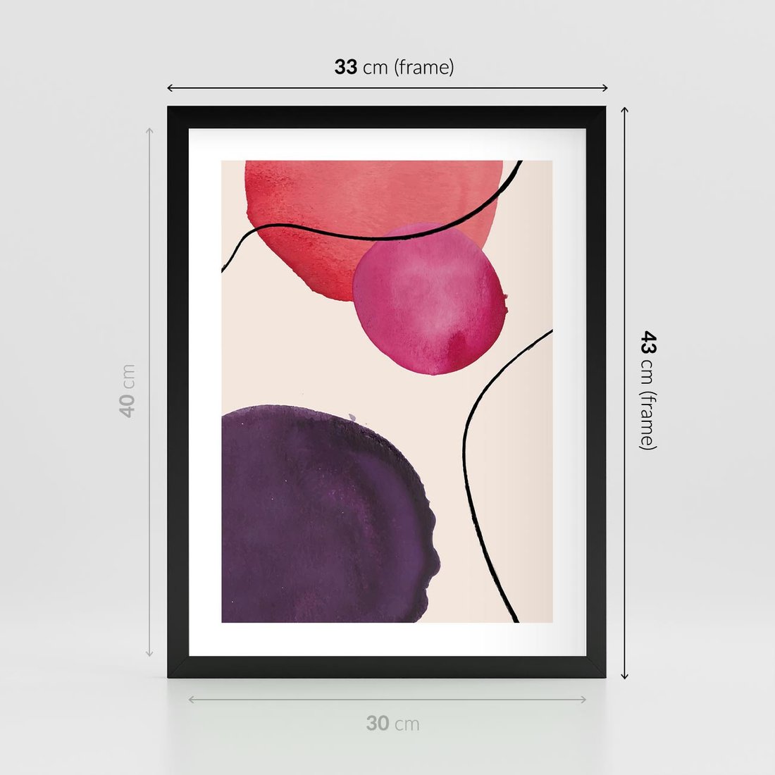 Plakat w ramie 30x40 - Kolorowe Impresje - abstrakcyjne akwarelowe plamy, nieregularne linie - rama czarna