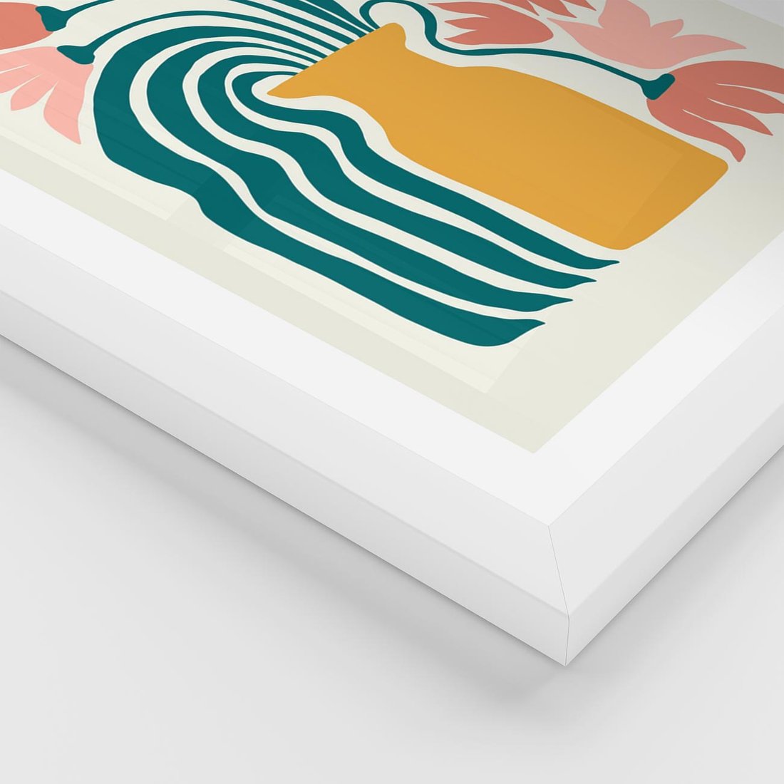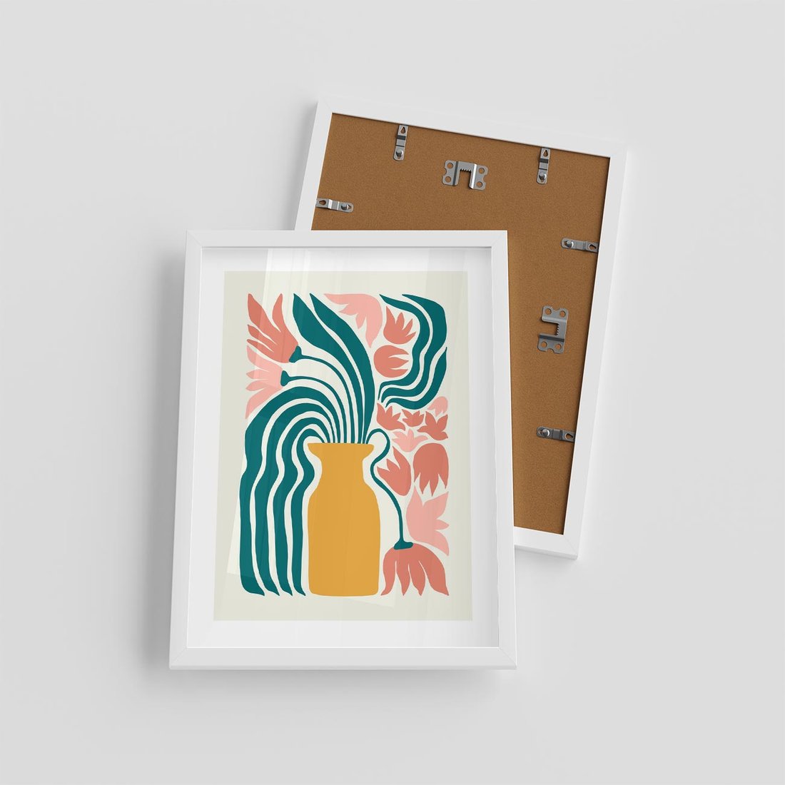 Plakat w ramie 30x40 - Kolorowe Pasmo - abstrakcyjne kwiaty w wazonie, pdastelowe kolory - rama biała
