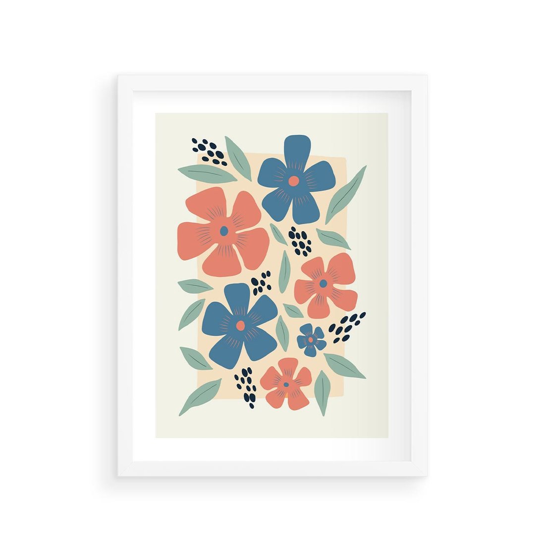 Ten plakat w nowoczesnej abstrakcji odkrywa piękno kwiatów, balansując z delikatną typografią. Kompozycja oddaje wyjątkową estetykę natury i sztuki, tworząc inspirującą przestrzeń.
