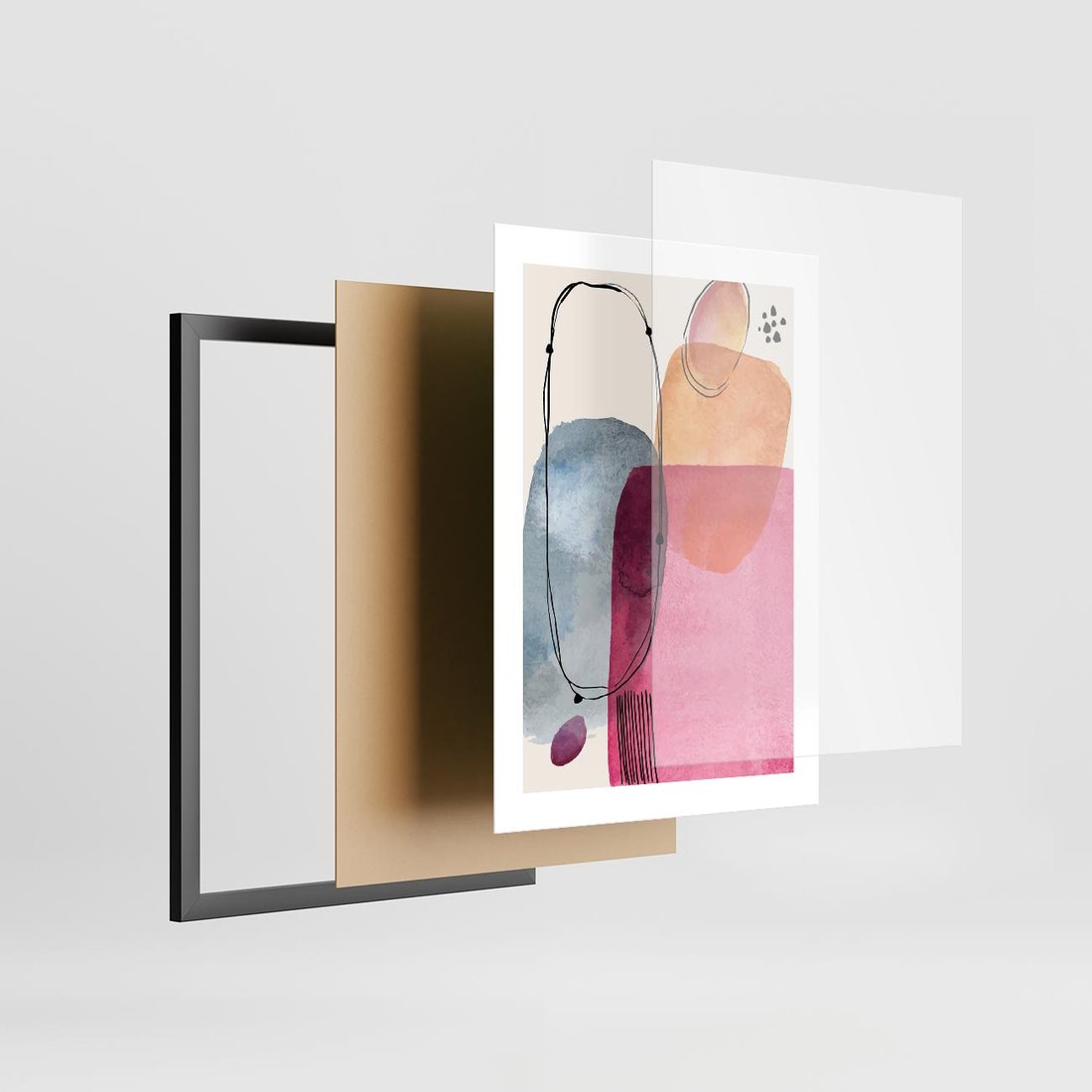 Kolorowe pastelowe plamy w rozmytych, żywych odcieniach, zdobione delikatnymi szlaczkami. To minimalistyczne dzieło sztuki, które wprowadza wibrację i subtelność do Twojej przestrzeni, tworząc kompozycję pełną wyrafinowanego minimalizmu.