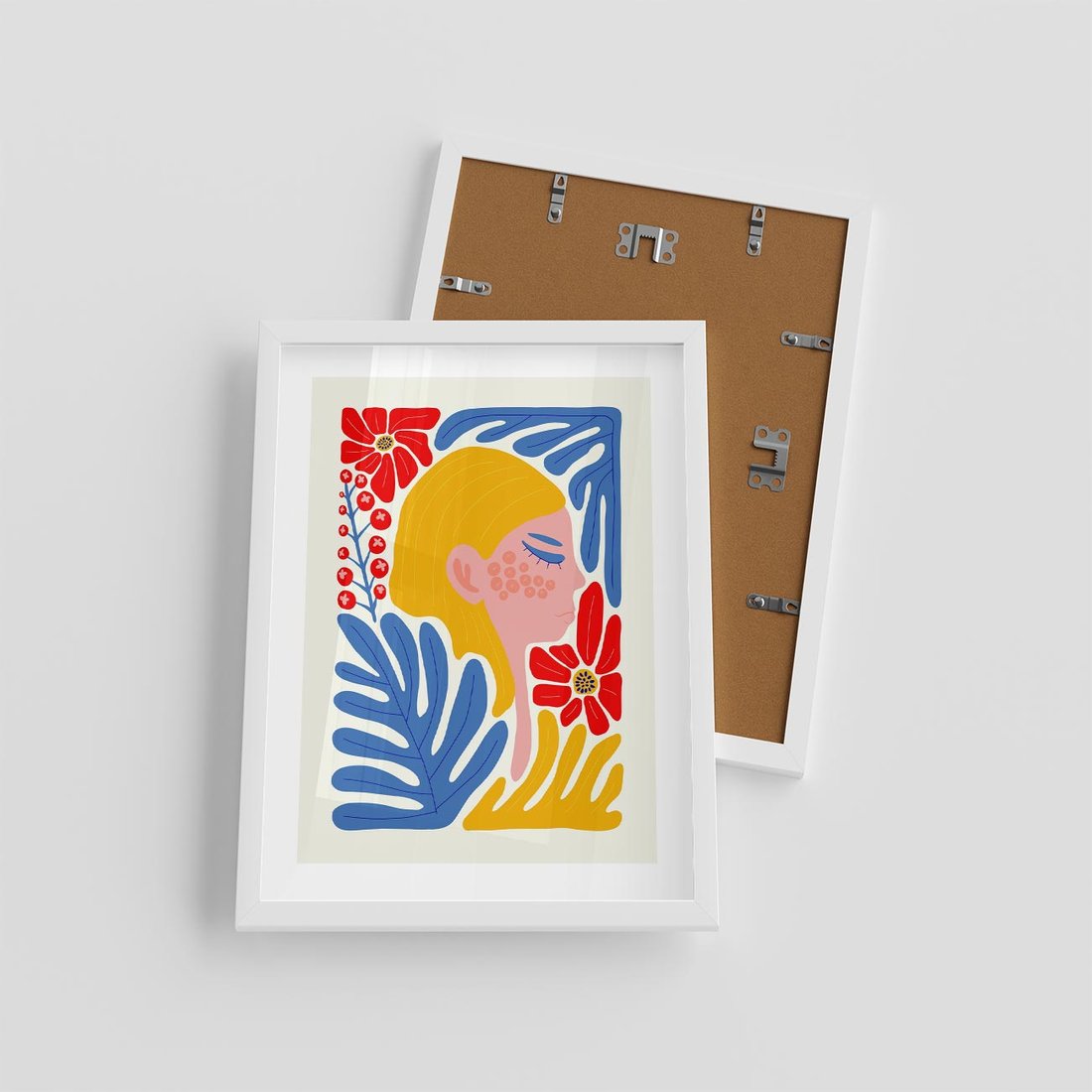 Ten nowoczesny plakat eksploruje kobiecą naturę w abstrakcyjny sposób, wykorzystując wyraziste kolory. Sztuka ta jest manifestacją siły, piękna i ekspresji, tworząc unikalne wrażenie w przestrzeni.