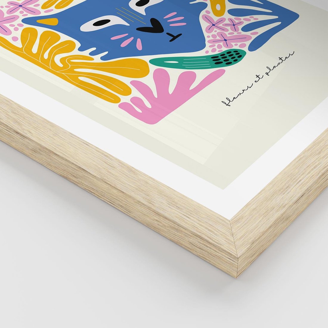 Plakat w ramie 30x40 - Kolorowe Spektrum - abstrakcyjny plakat, niebieski kot - rama drewno