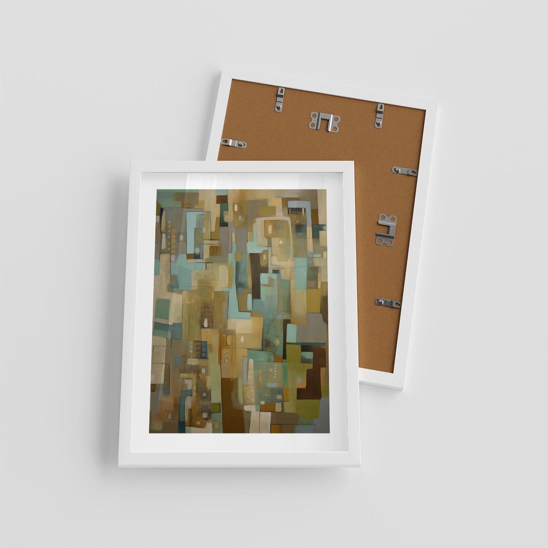 Ten abstrakcyjny obraz jest pełen mnogości kolorów i drobnych elementów, które zaskakująco tworzą spójną całość. Geometryczne kształty w ciekawej kompozycji zapewniają intrygujący efekt, przyciągając wzrok i budząc ciekawość. To dzieło sztuki jest dynamiczne i pełne energii.
