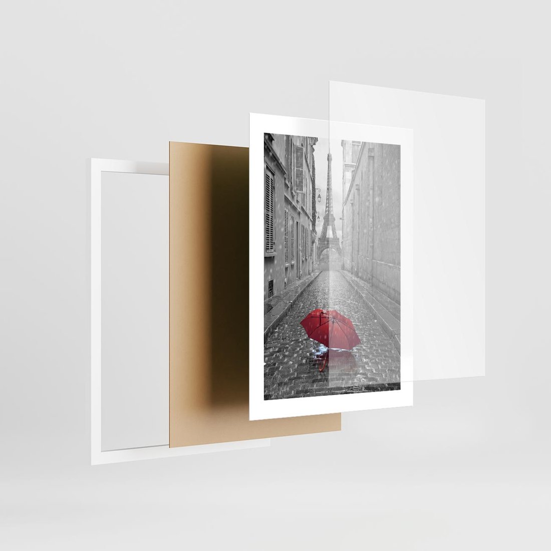 Plakat w ramie 30x40 - Kolorowy parasol w Paryżu - Paryż, parasol - rama biała