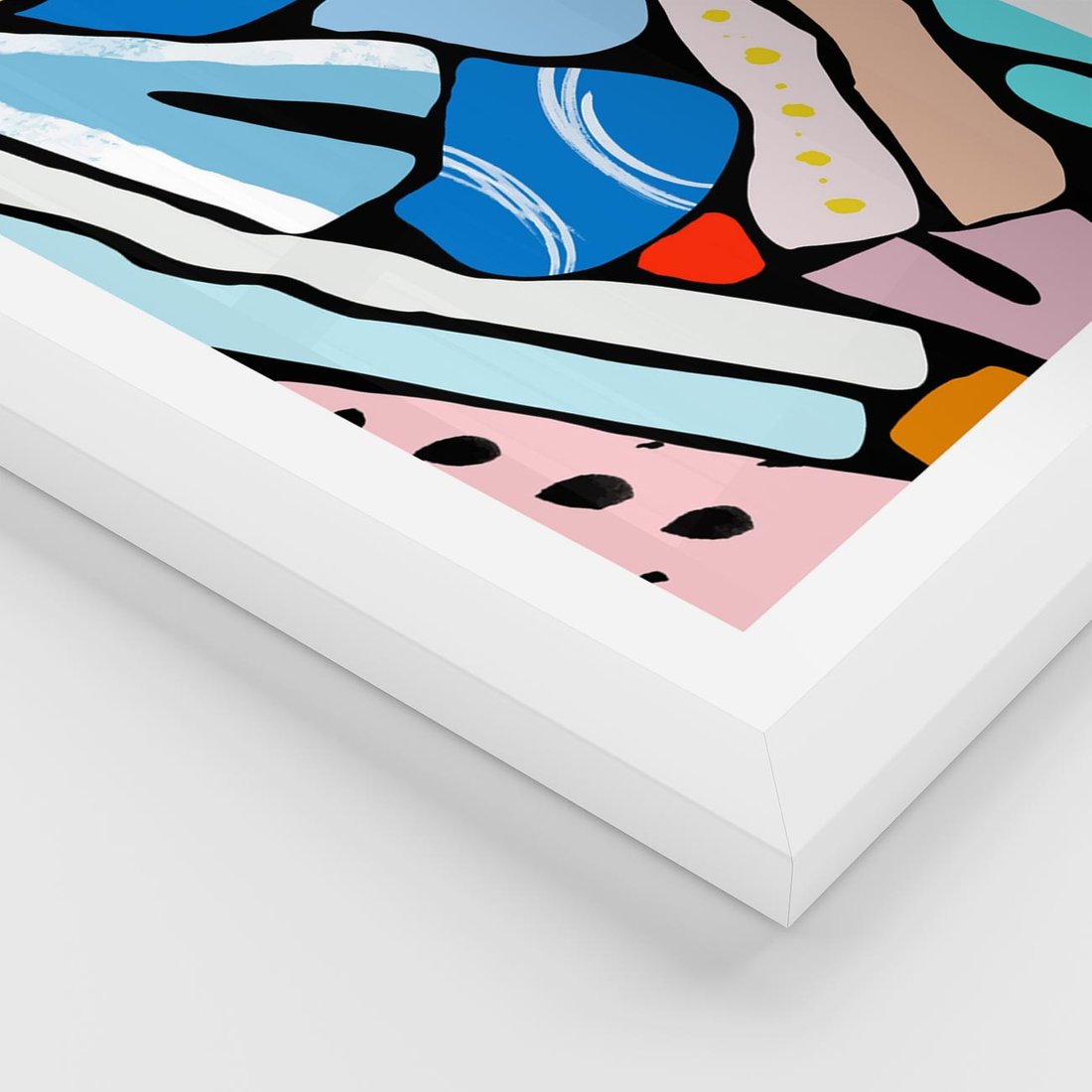 Plakat w ramie 30x40 - Kolory Na Czerni - abstrakcyjne formy, komiksowy styl - rama biała