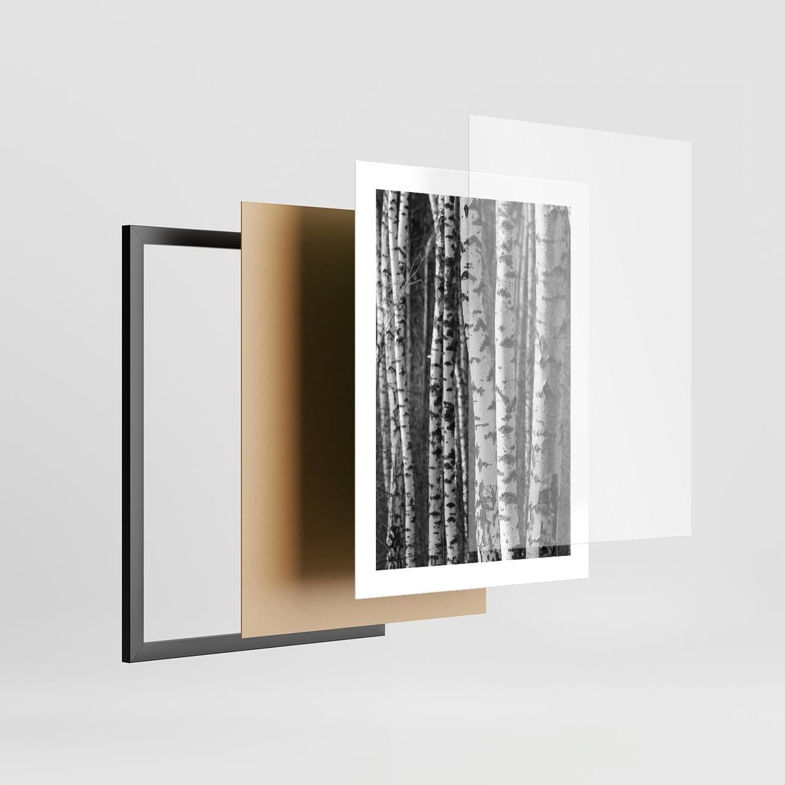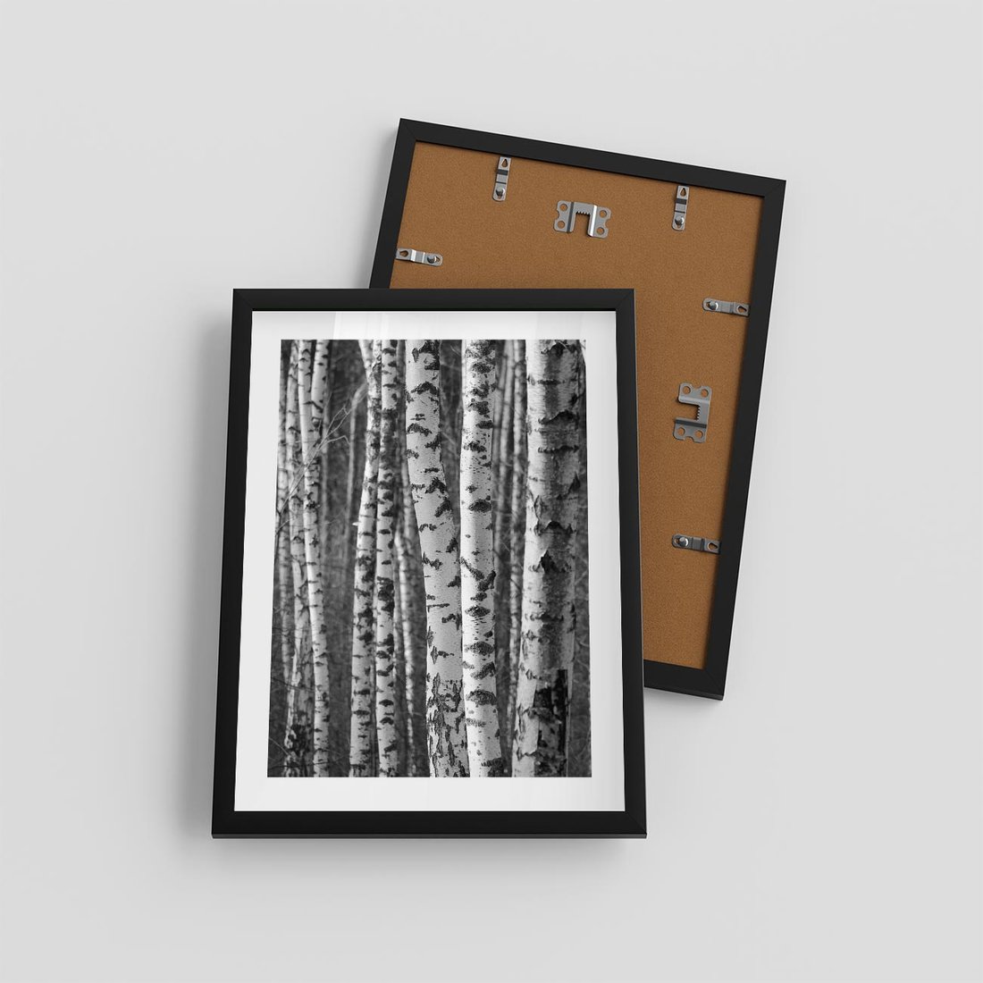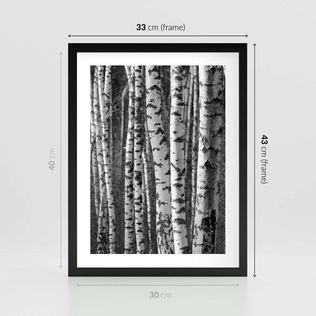 Plakat w ramie 30x40 - Kontrast Monochromatyczny - brzozy, czarno - rama czarna