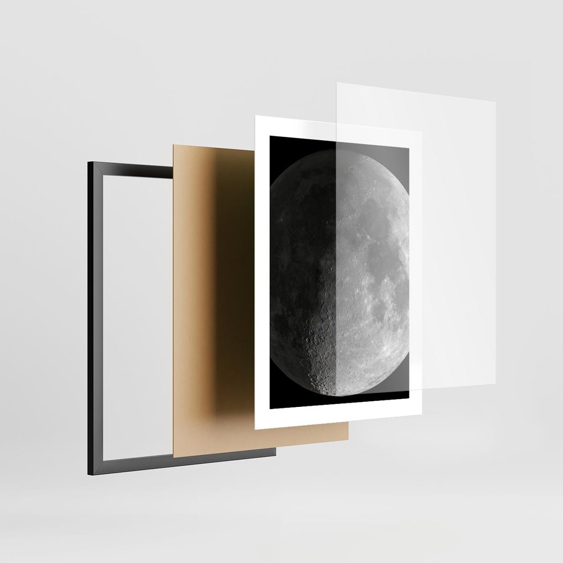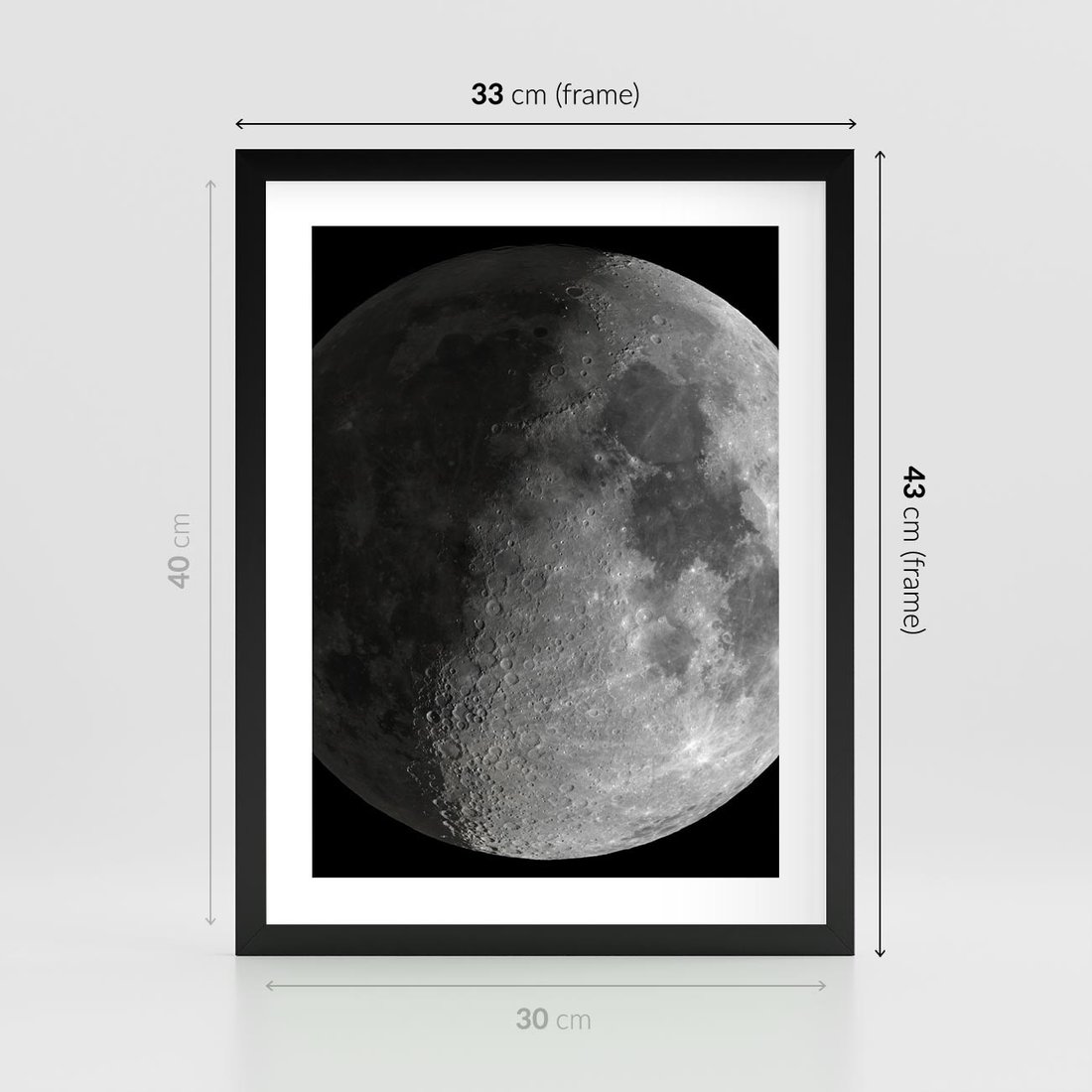 - Plakat w ramie 30x40 - Kontrastowy księżyc w czerni i bieli