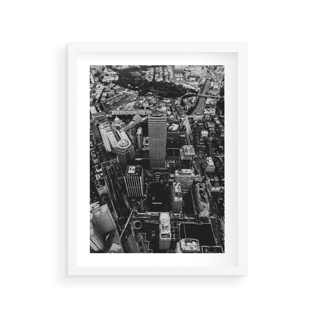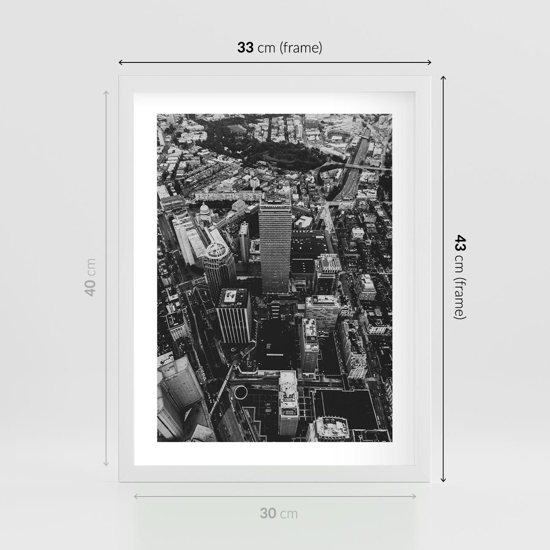 Plakat w ramie 30x40 - Kontrastujące miasto - miasto, biało - rama biała