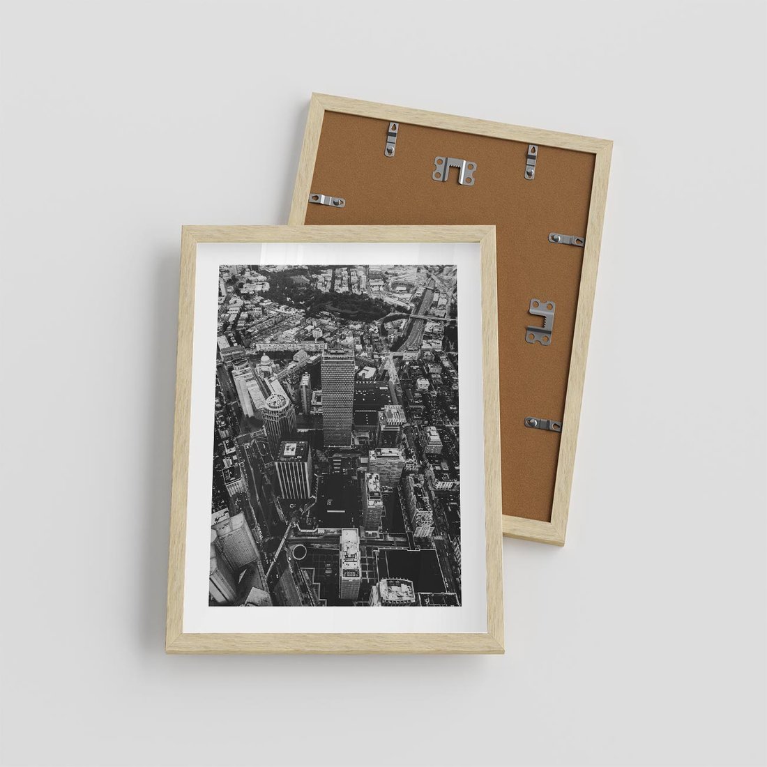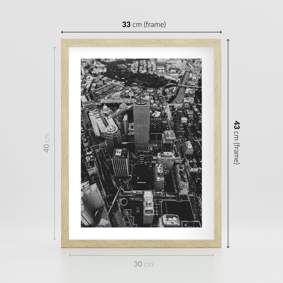 Plakat w ramie 30x40 - Kontrastujące miasto - miasto, biało - rama drewno