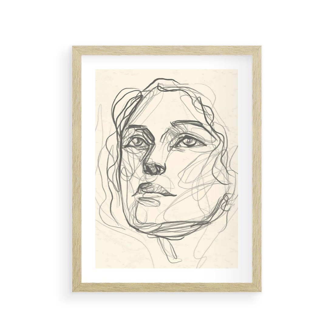 Plakat w ramie 30x40 - Konturem Uchwycone - plakat, minimalistyczny szkic - rama drewno