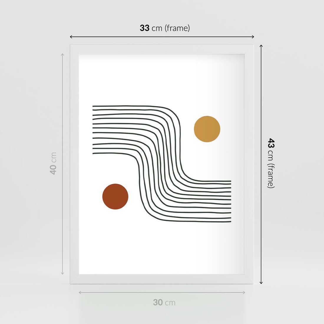 Plakat w ramie 30x40 - Kontury Harmonii - nieregularne linie, koła - rama biała