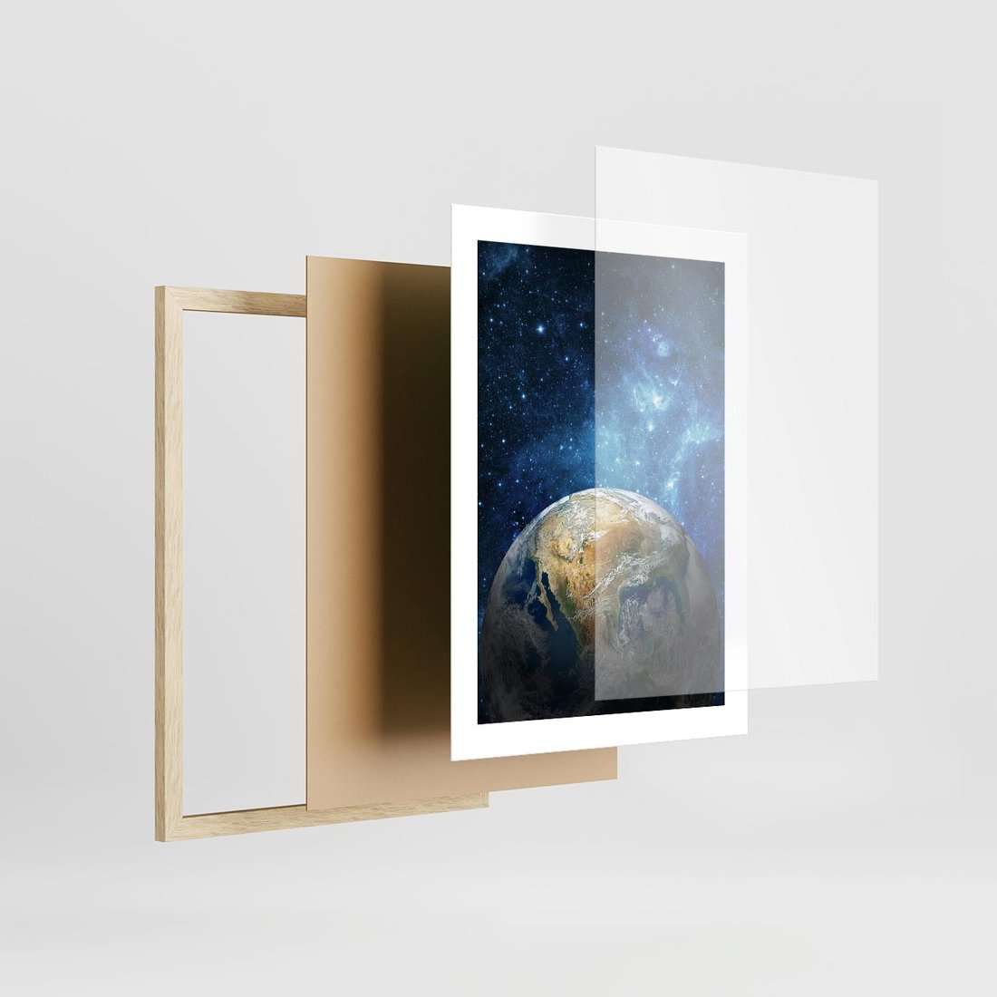 Plakat w ramie 30x40 - Kosmiczne Horyzonty - Ziemia, kosmos - rama drewno