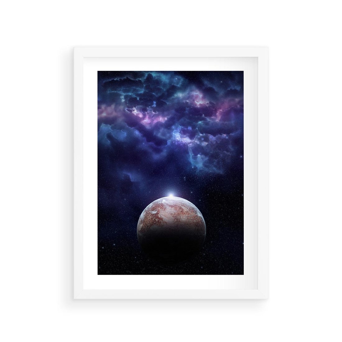 Plakat w ramie 30x40 - Kosmos - Ziemia i Księżyc - kosmos, ziemia - rama biała