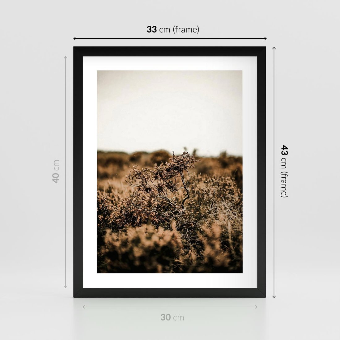 Plakat w ramie 30x40 - Krajobraz W Naturze: Beże i Brązy - suche krzewy, natura - rama czarna