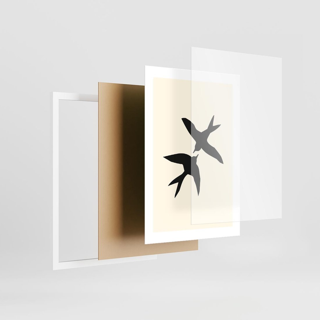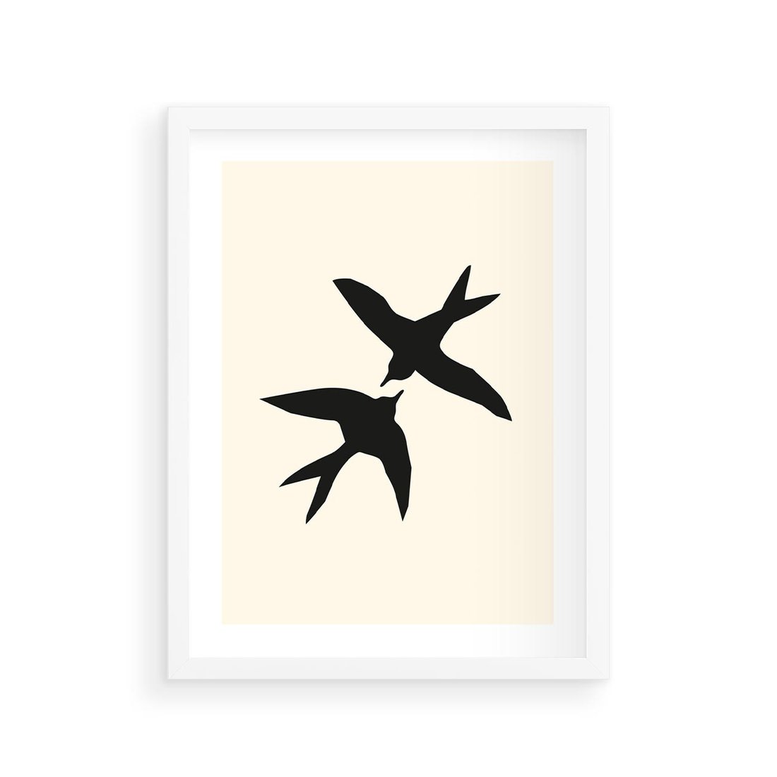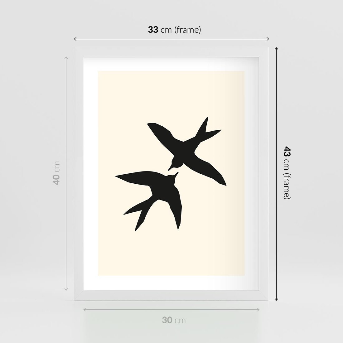 Plakat w ramie 30x40 - Kreatywne Echa - jaskółki, minimalizm - rama biała