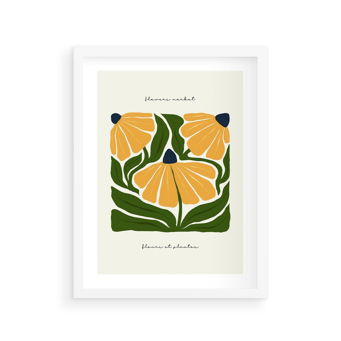 Plakat w ramie 30x40 - Kreatywne Wibracje - sztuka nowoczesna, kolorowe kwiaty - rama biała