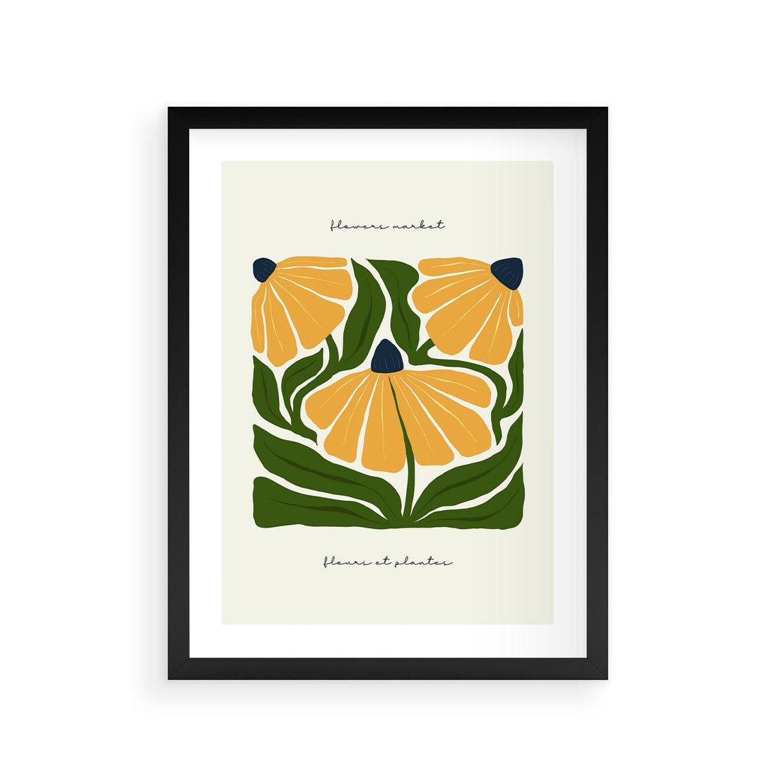 Plakat w ramie 30x40 - Kreatywne Wibracje - sztuka nowoczesna, kolorowe kwiaty - rama czarna