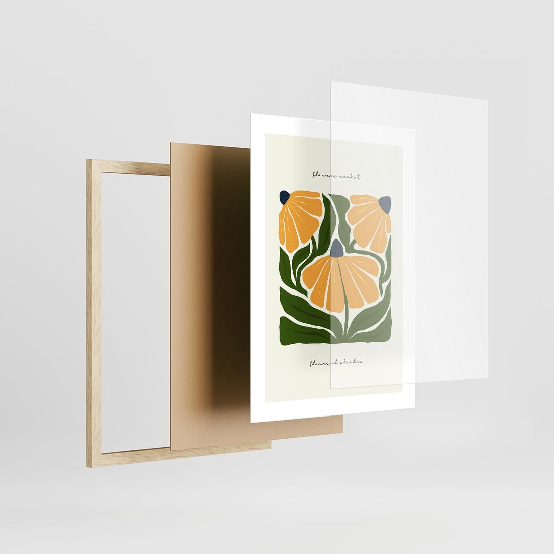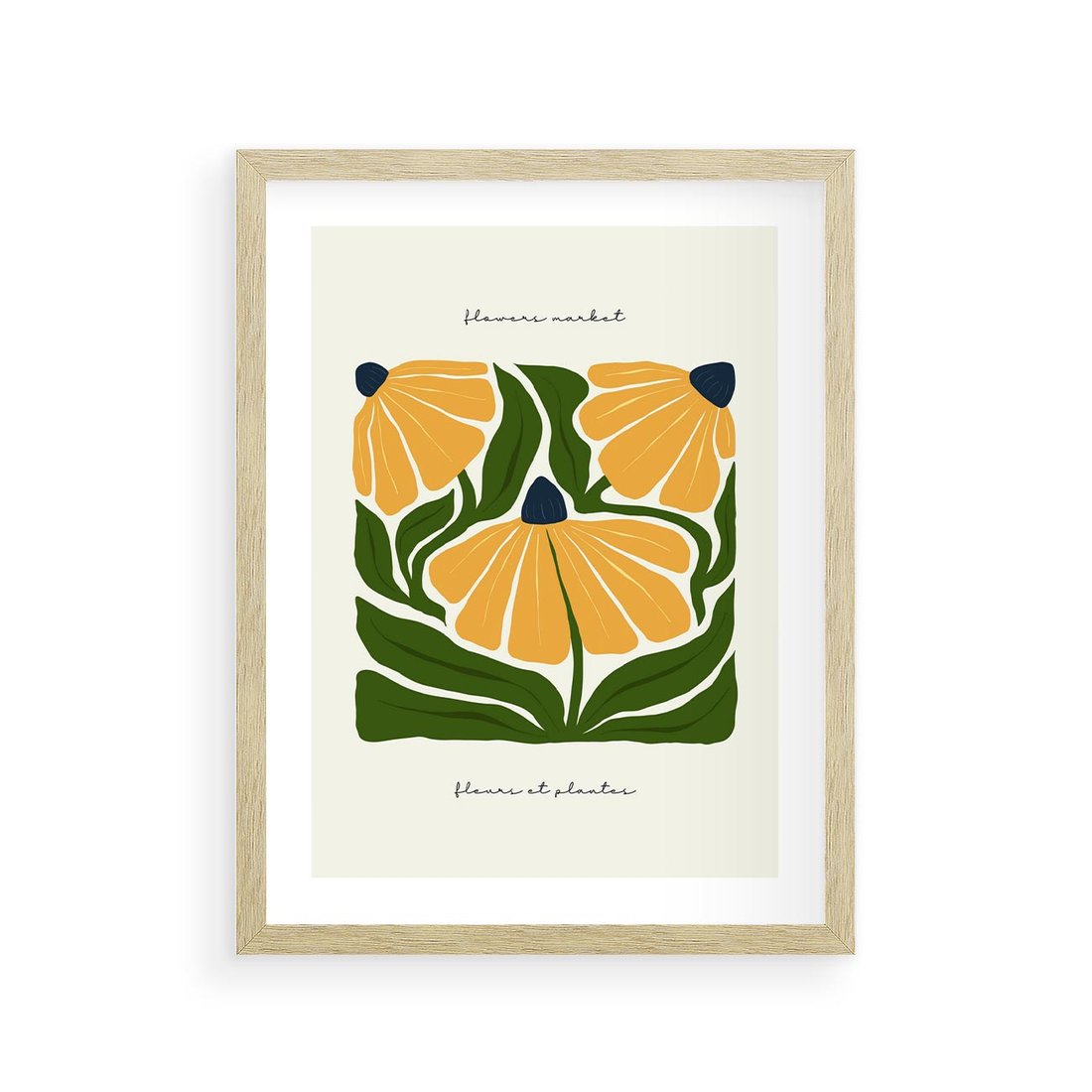 Plakat w ramie 30x40 - Kreatywne Wibracje - sztuka nowoczesna, kolorowe kwiaty - rama drewno