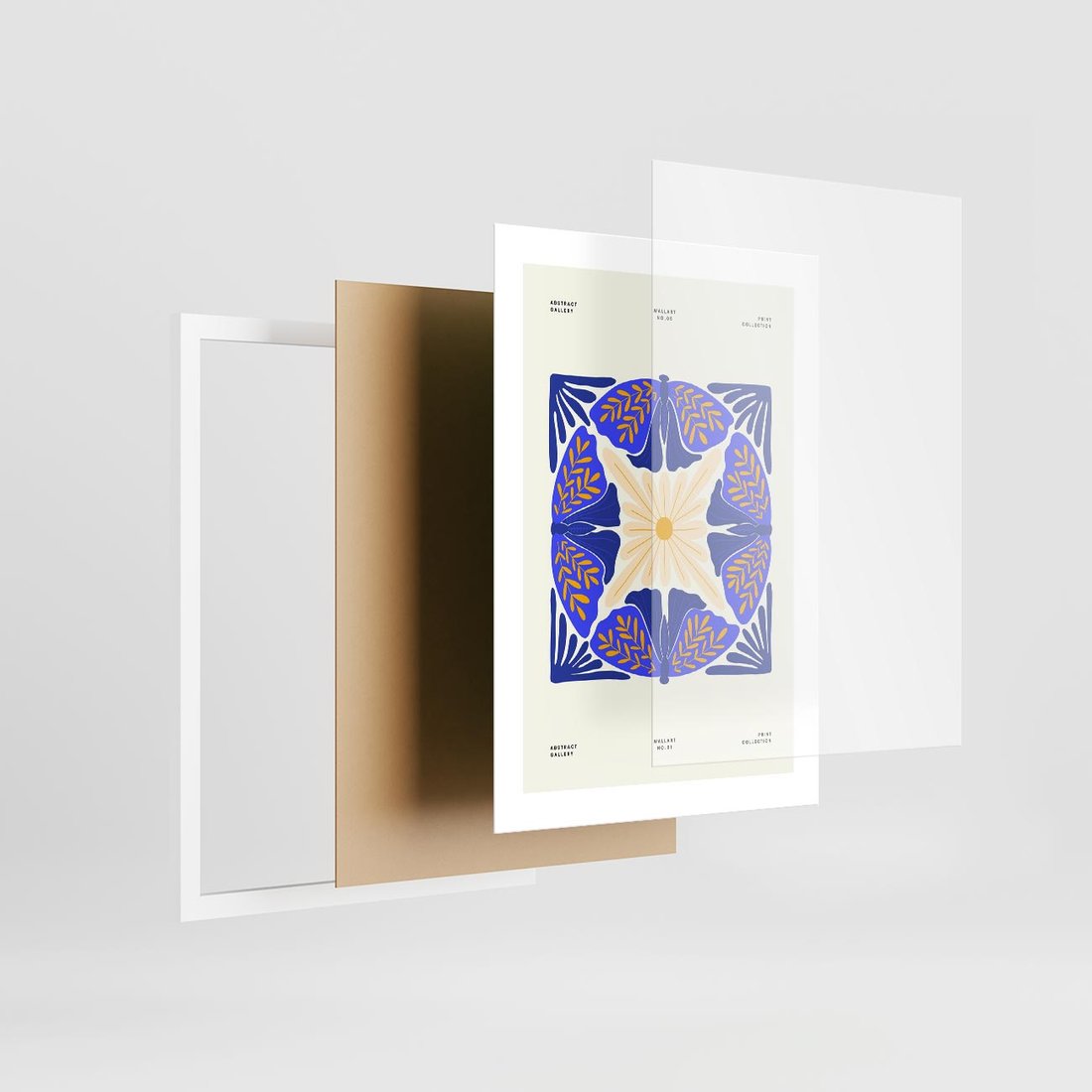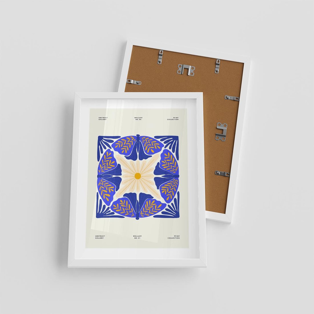 Ten nowoczesny plakat prezentuje abstrakcyjną boho kompozycję, gdzie granatowe ćmy spotykają się z kwiatami. Sztuka ta przenosi nas w magiczny świat natury, łącząc abstrakcję z elementami boho w oryginalny i inspirujący sposób.