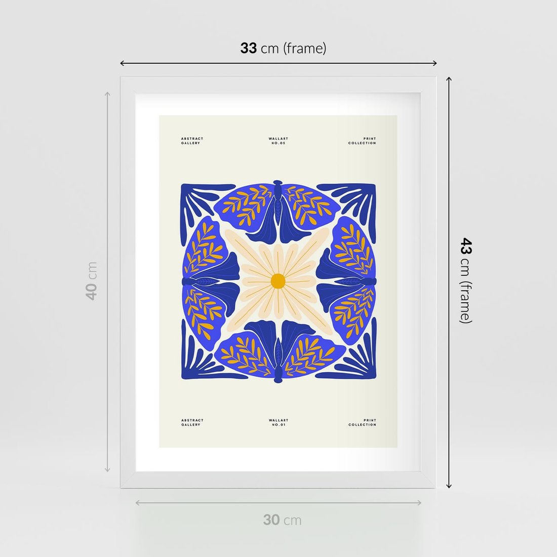 Plakat w ramie 30x40 - Księga Abstrakcji - abstrakcyjna boho kompozycja, granatowe ćmy - rama biała