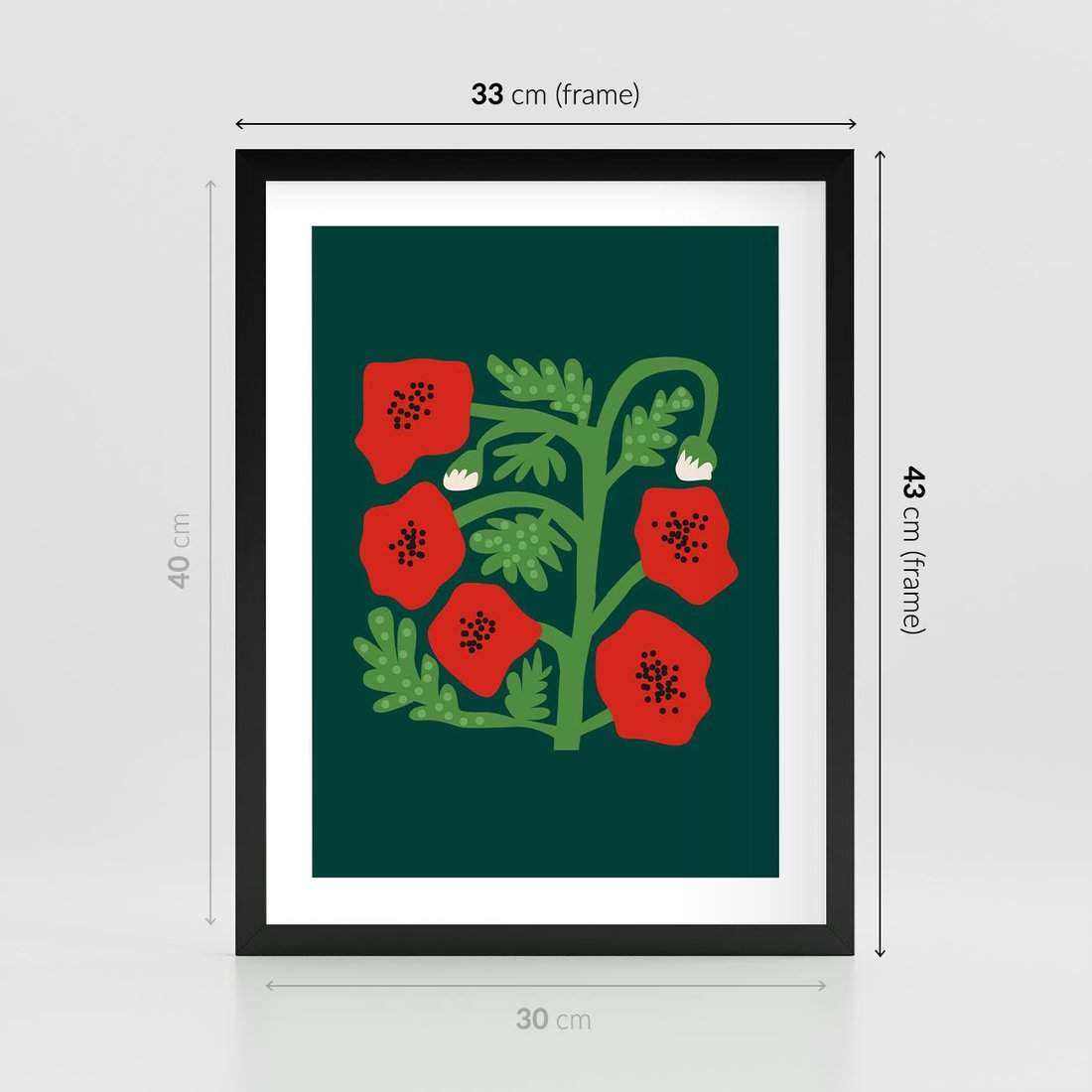 Plakat w ramie 30x40 - Księga Odbić - abstrakcyjna kwiatowa kompozycja, zielone mocne tło - rama czarna
