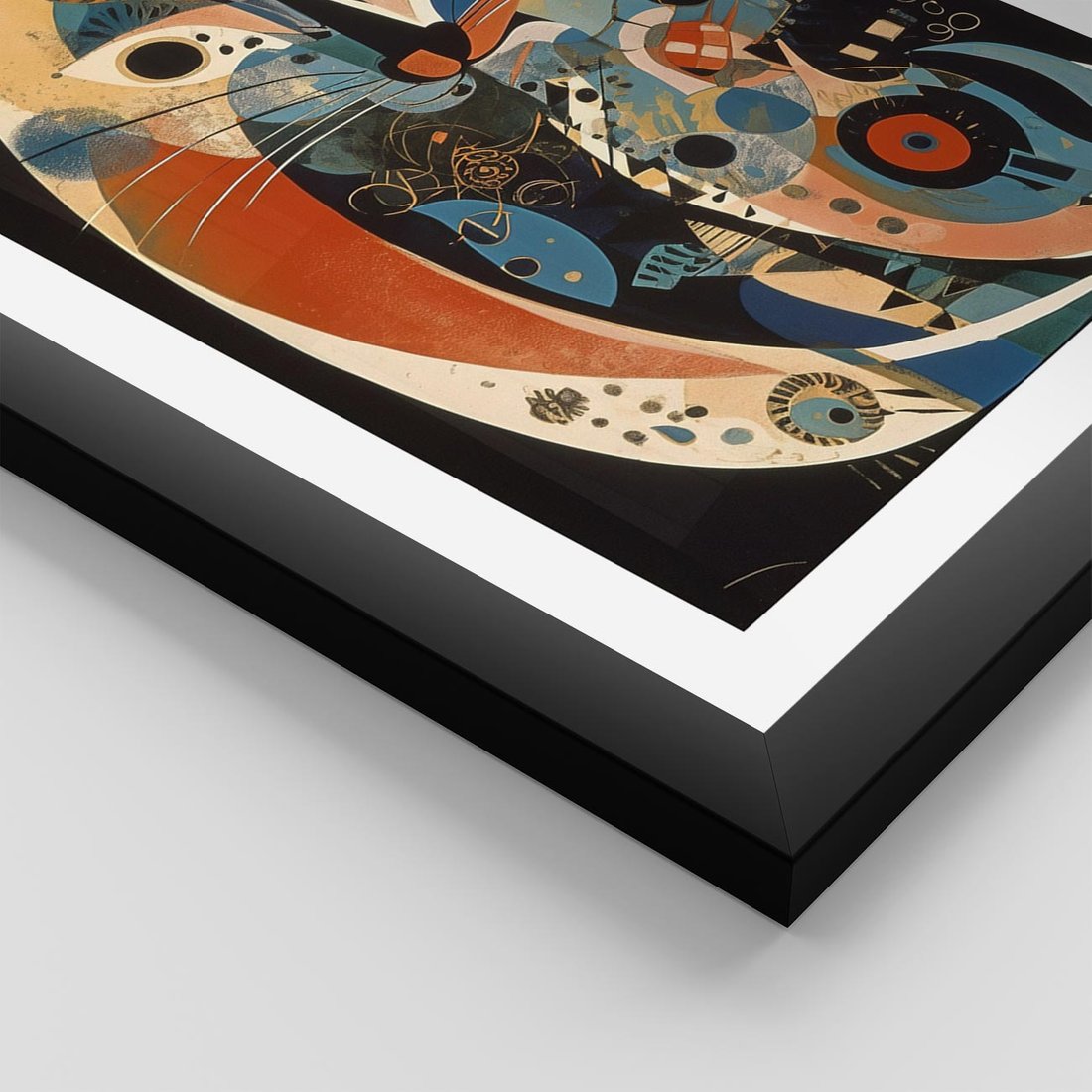 Ten abstrakcyjny obraz olejny przedstawia kota w stylu nawiązującym do twórczości Picassa. Na tle ciemnych barw wyłania się zmysłowa i unikalna interpretacja kociego piękna, pełna geometrycznych form i odważnych kolorów.