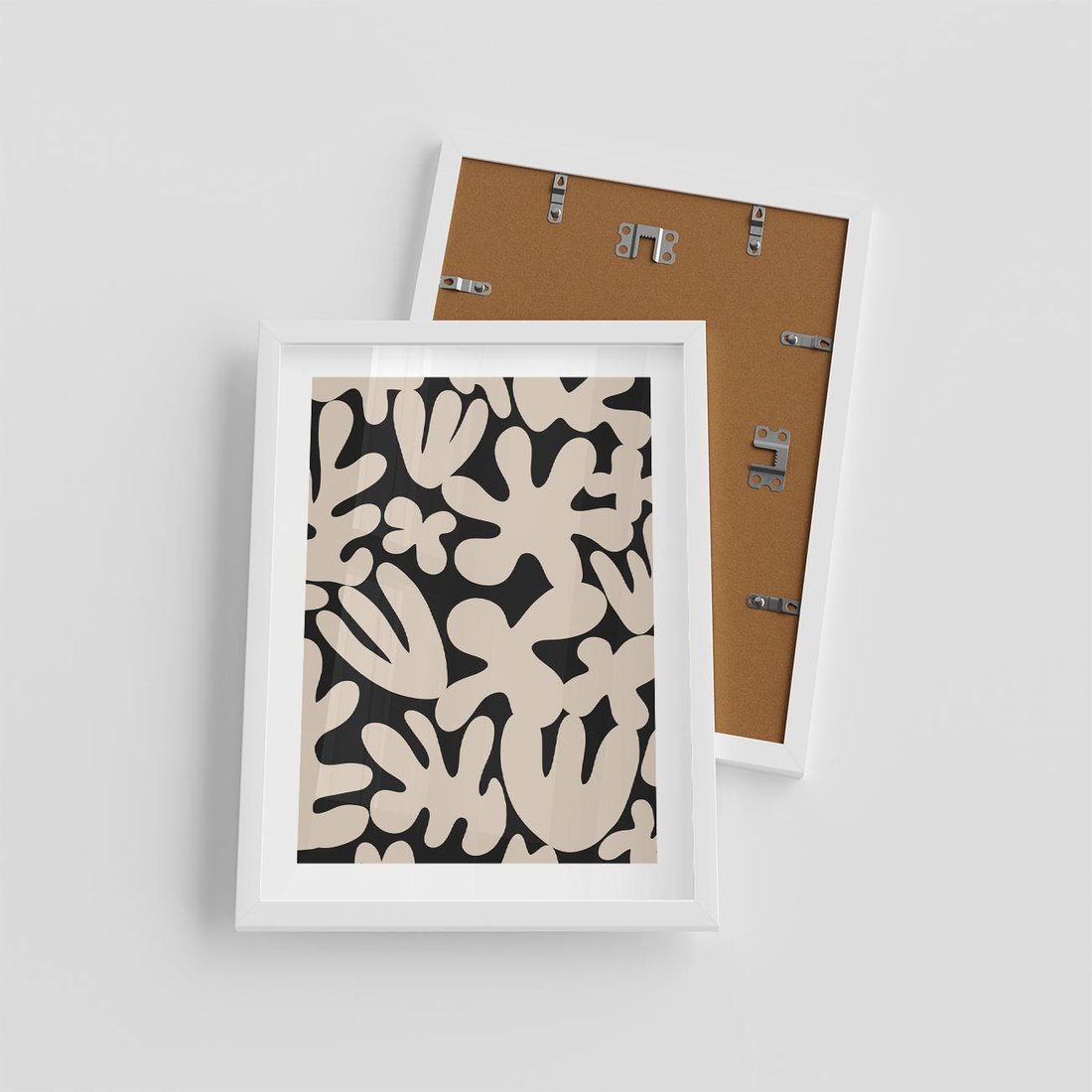 Plakat w ramie 30x40 - Księga Ukrytych Widoków - abstrakcyjne czarno białe formy, minimalizm - rama biała