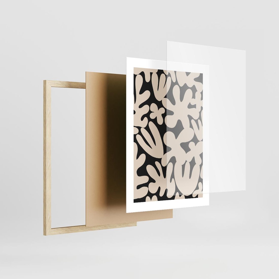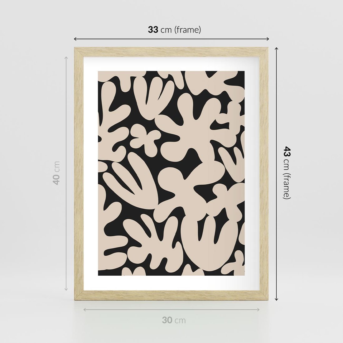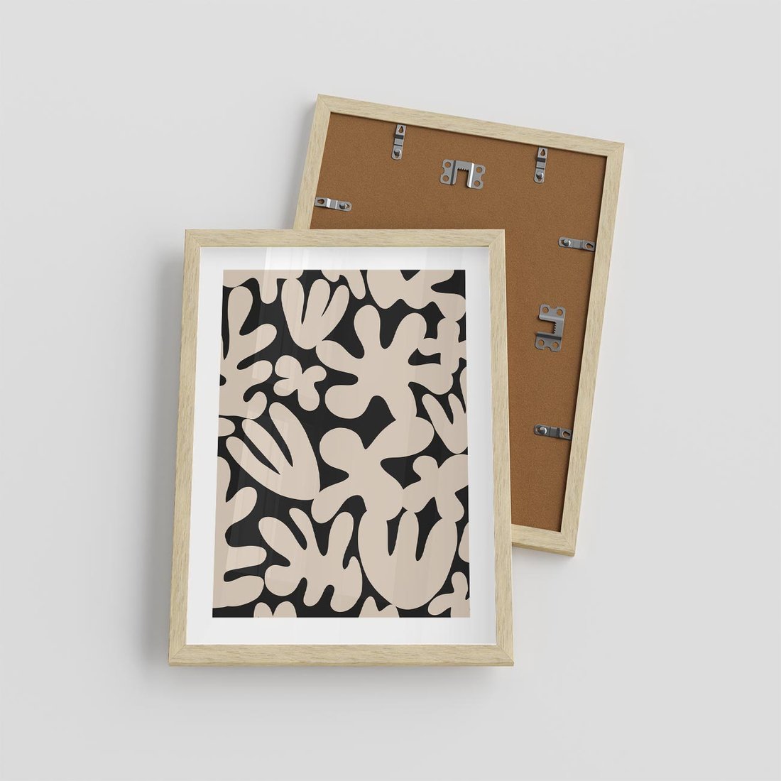 Plakat w ramie 30x40 - Księga Ukrytych Widoków - abstrakcyjne czarno białe formy, minimalizm - rama drewno