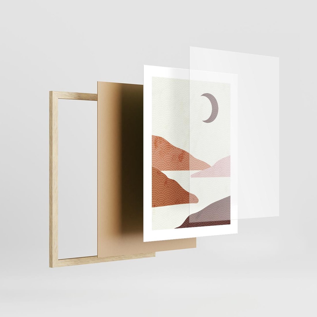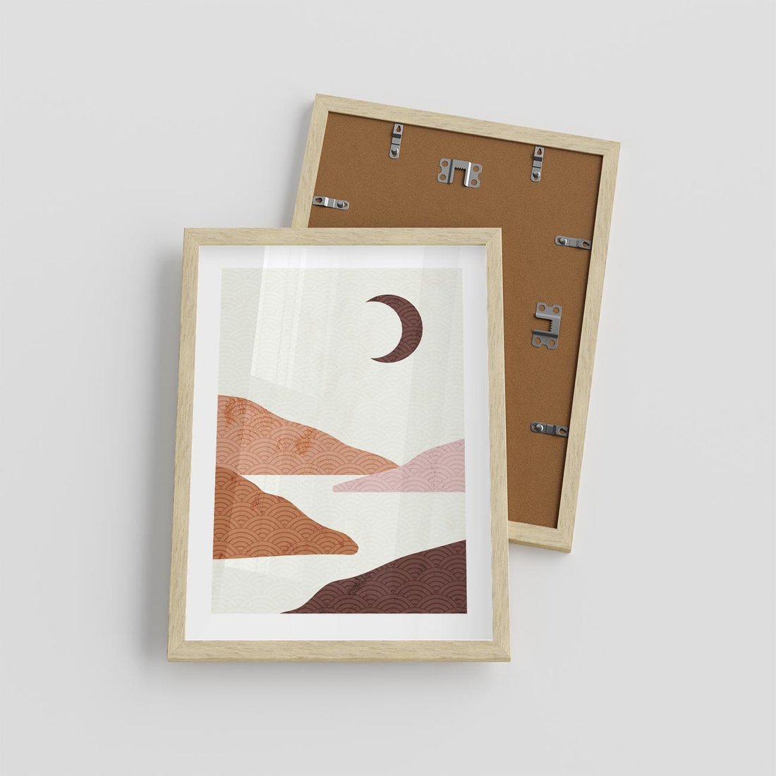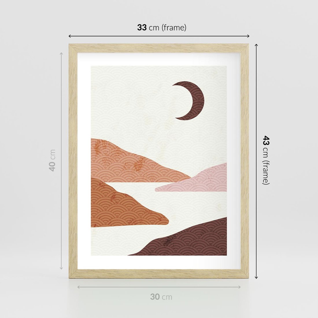 Plakat w ramie 30x40 - Księżycowa Refleksja - nowoczesna sztuka, góry - rama drewno