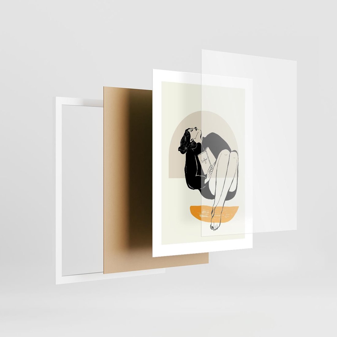 Grafika przedstawia minimalistyczny portret kobiety w odcieniach czarnego i żółtego, co tworzy nowoczesną i wyrazistą kompozycję.
