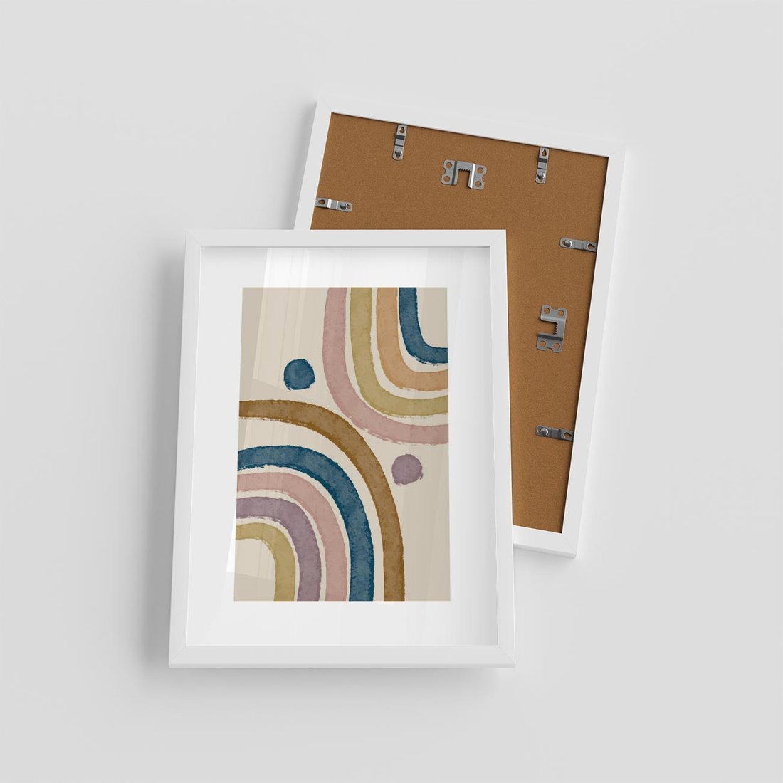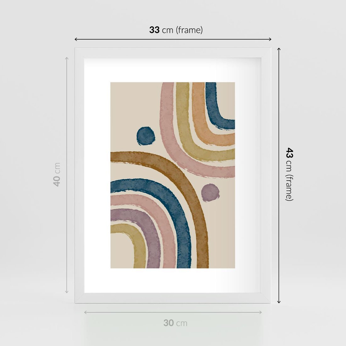 Plakat w ramie 30x40 - Kształtujące Inspiracje - abstrakcyjne tęcze, kompozycja - rama biała