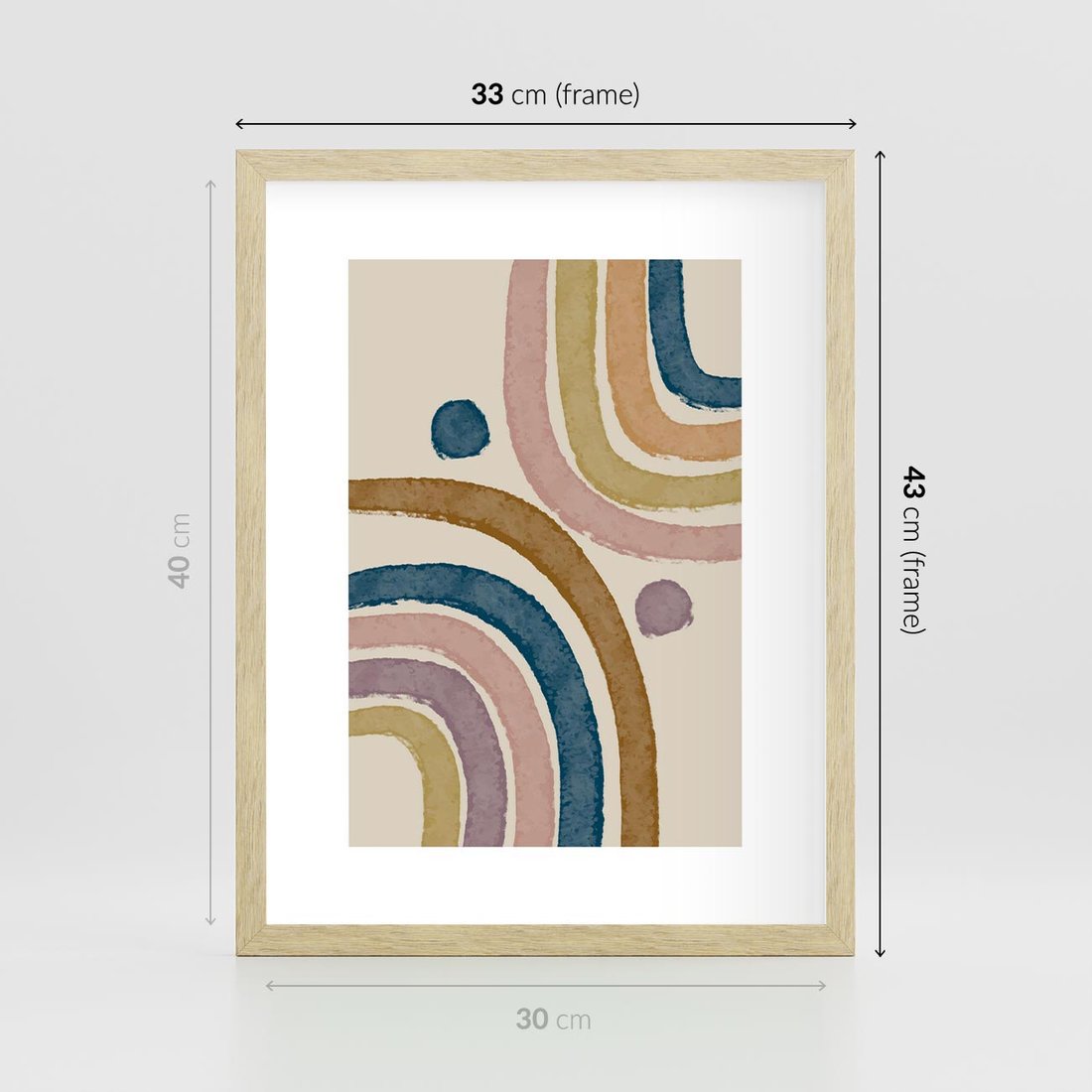 Plakat w ramie 30x40 - Kształtujące Inspiracje - abstrakcyjne tęcze, kompozycja - rama drewno