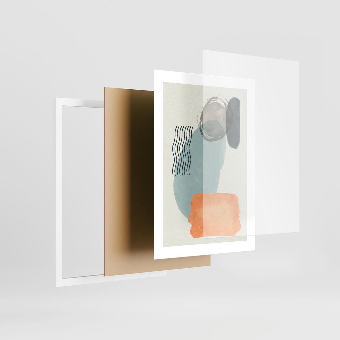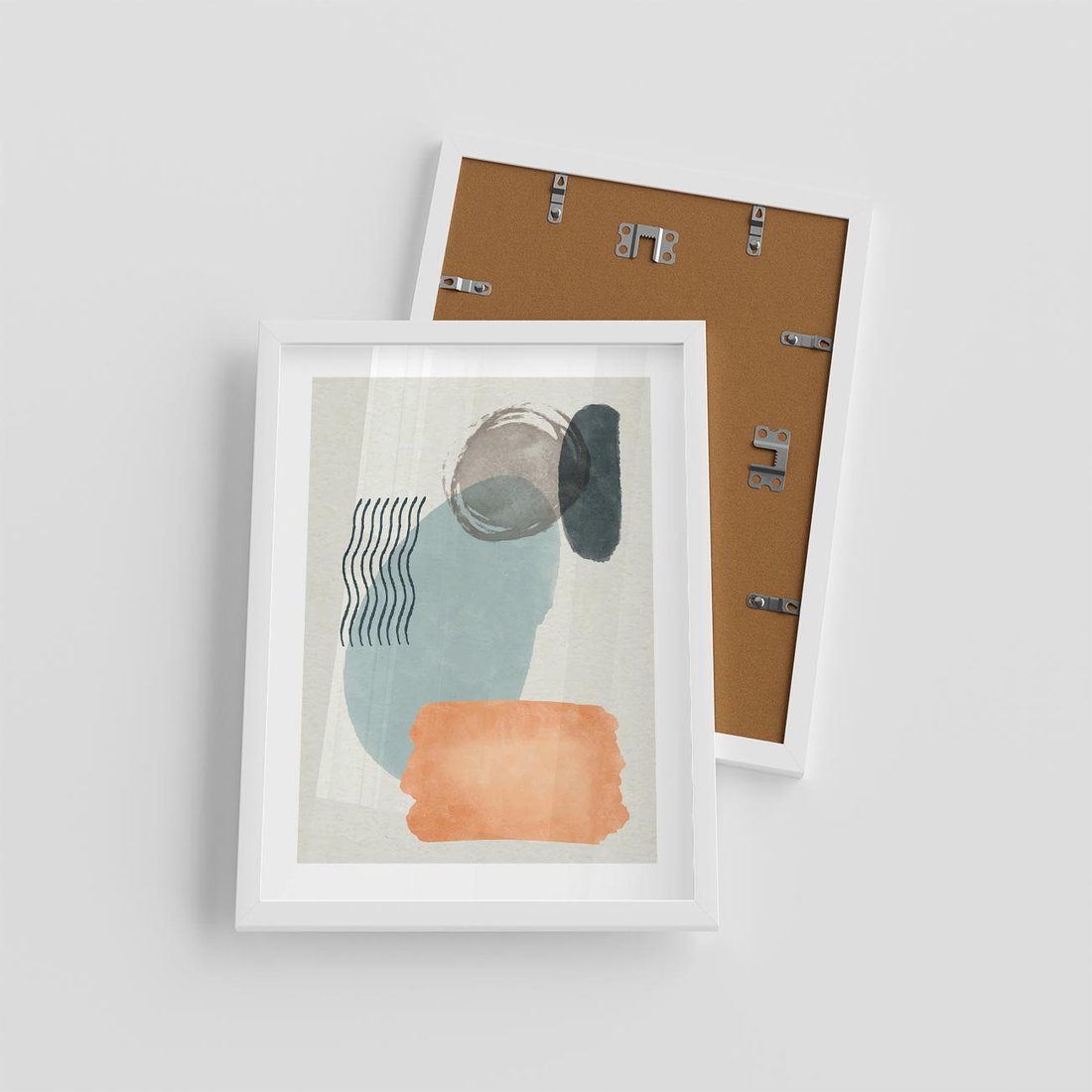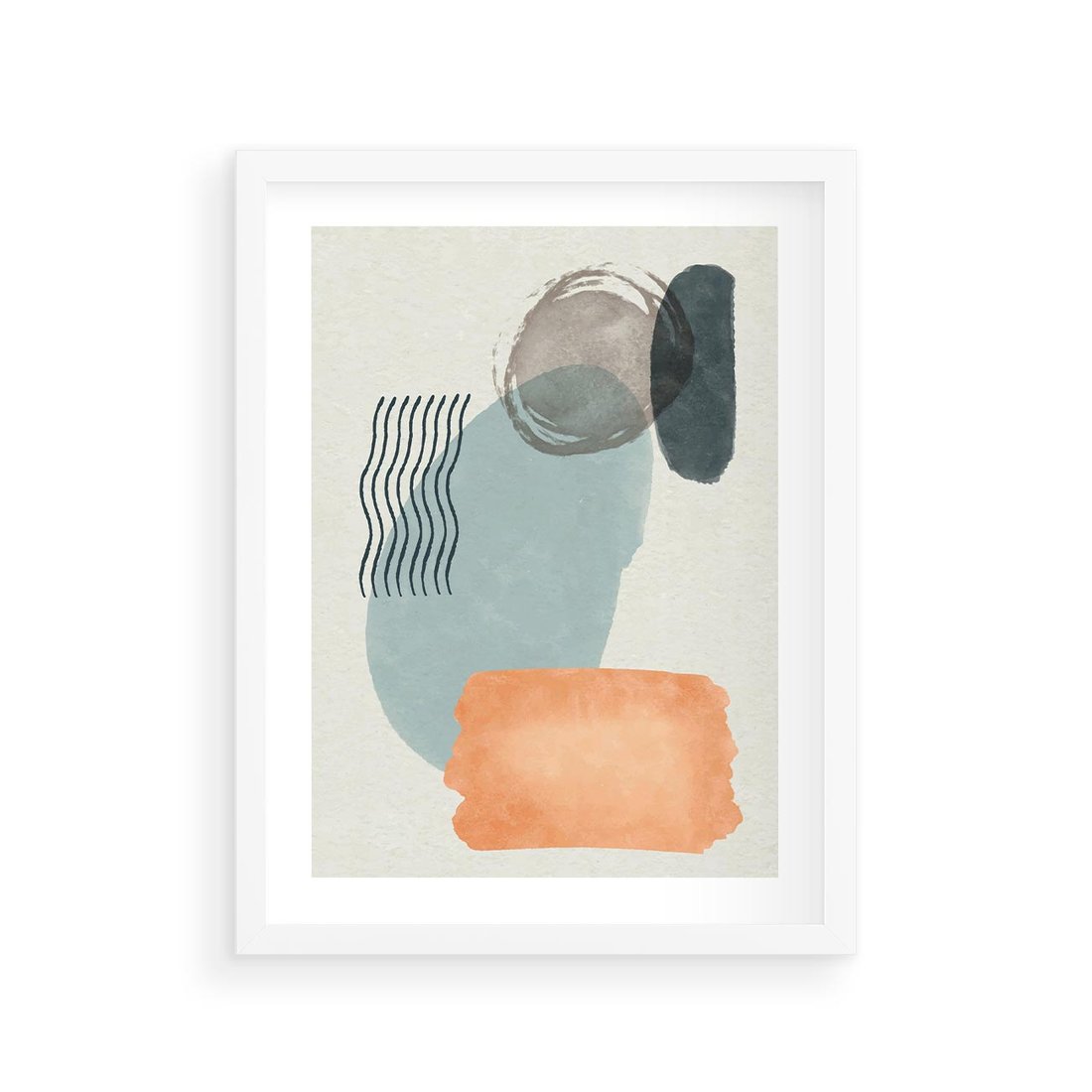 Plakat w ramie 30x40 - Kształtujące Plamy - geometryczne elementy, stonowane ziemiste kolory - rama biała