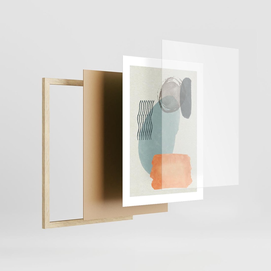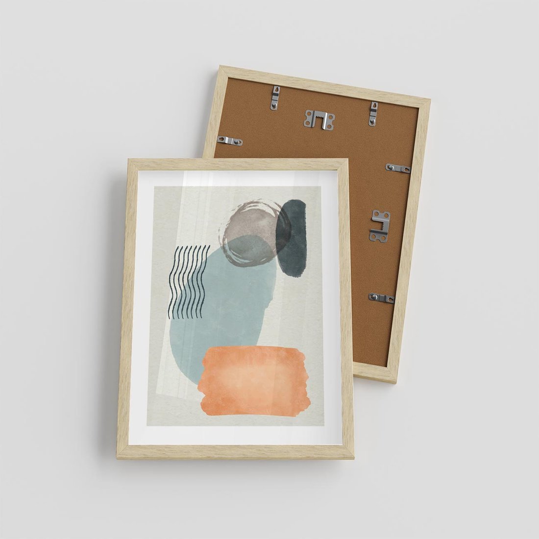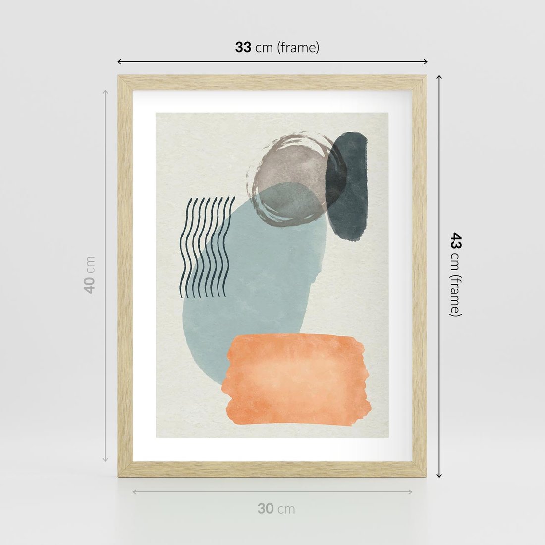 Plakat w ramie 30x40 - Kształtujące Plamy - geometryczne elementy, stonowane ziemiste kolory - rama drewno