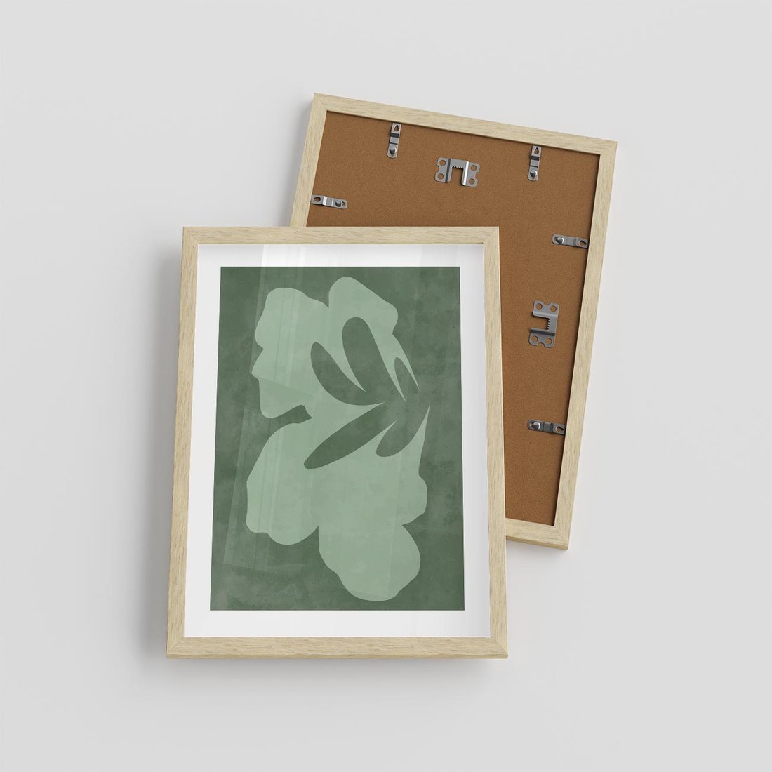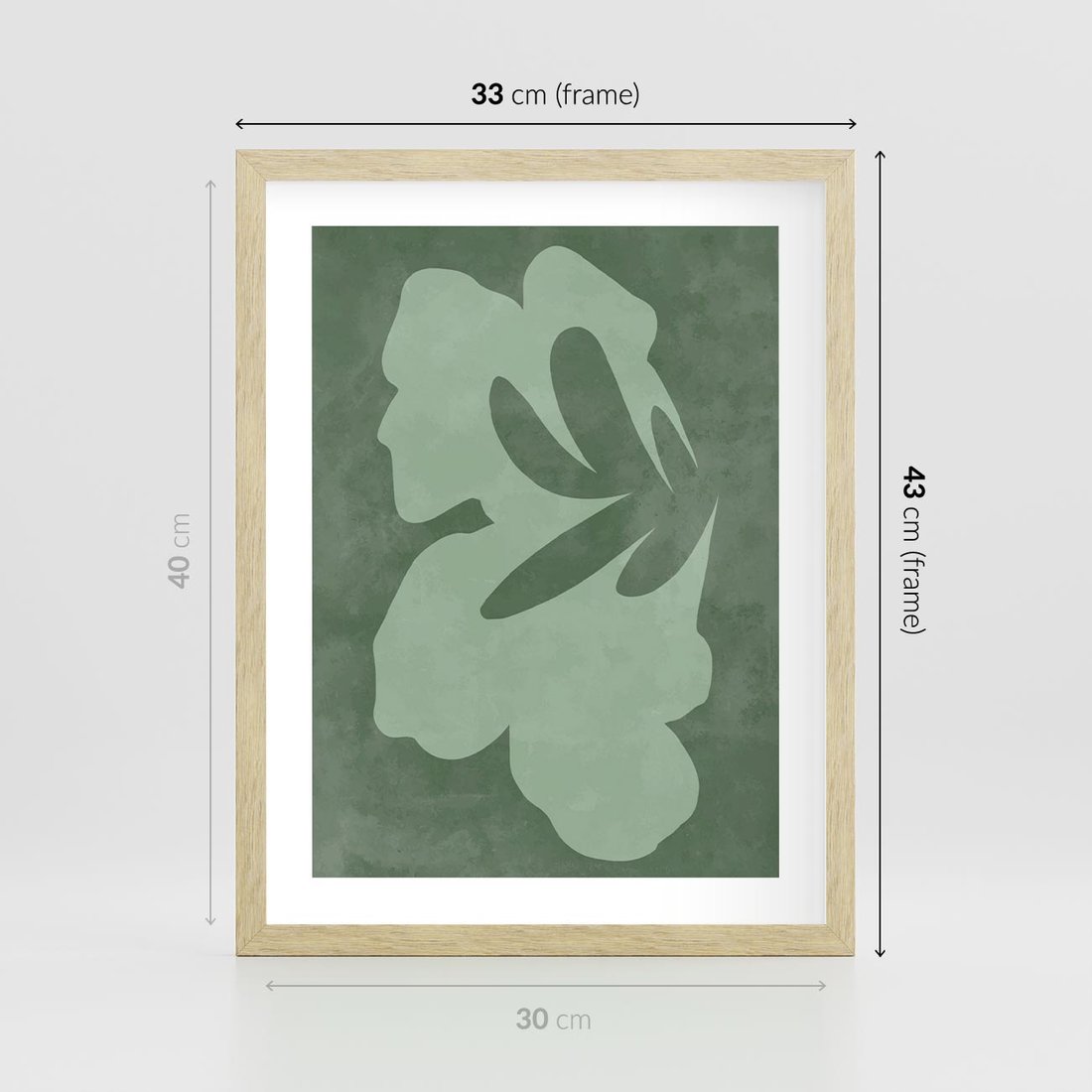 Plakat w ramie 30x40 - Kształty Zieleni - abstrakcyjny kształt, zielony plakat - rama drewno