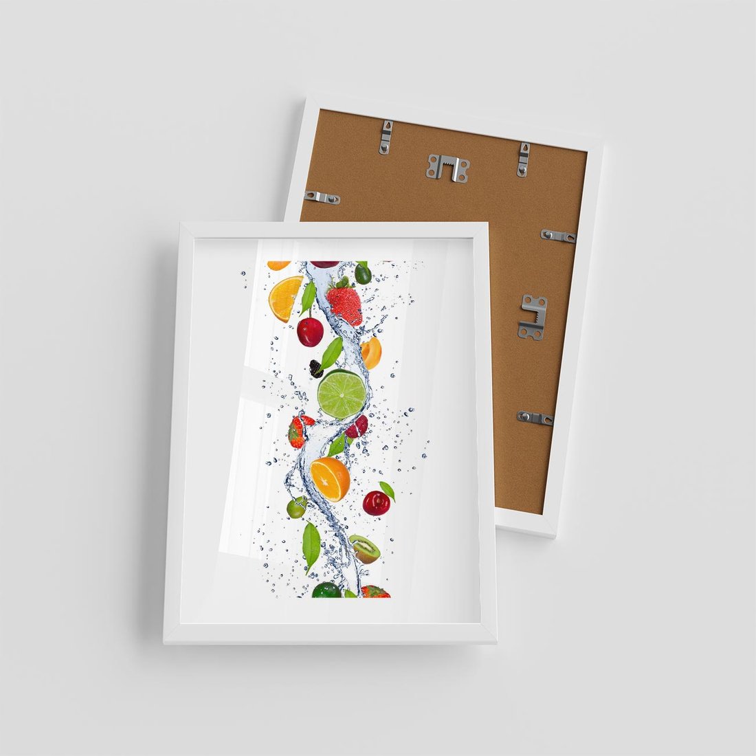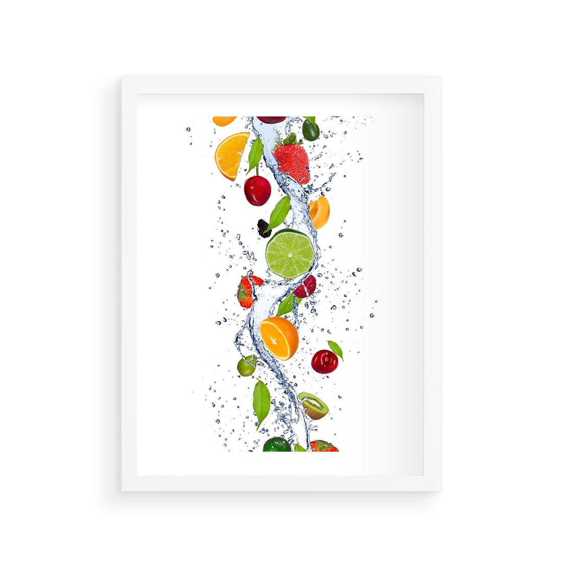 Plakat w ramie 30x40 - Kulinarne Inspiracje - owoce, woda - rama biała