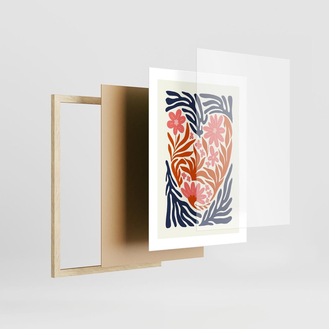 Ta nowoczesna grafika w pastelowych odcieniach przenosi nas w świat kolorowych kwiatów w odcieniach granatu, różu i pomarańczy. To artystyczna podróż przez barwne ogrody, wprowadza do wnętrza dawkę radości i harmonii. To obraz, który wprost promienieje kolorami i energią natury.