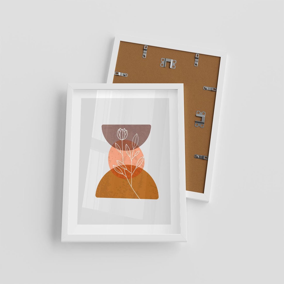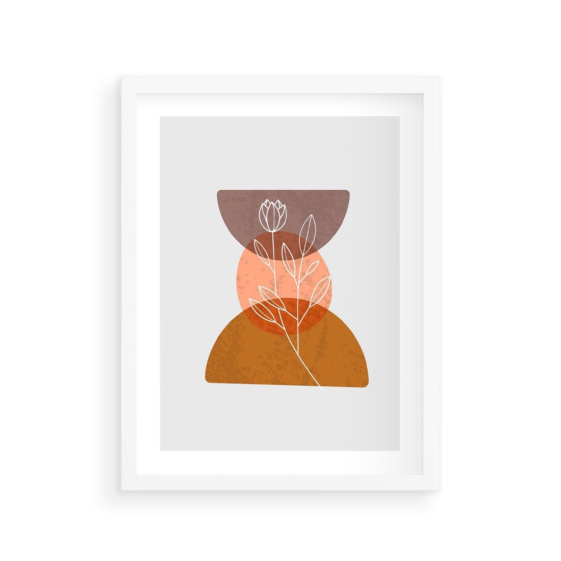 Plakat w ramie 30x40 - Kwiatowa Akwarela - akwarelowe kształty, brąz - rama biała