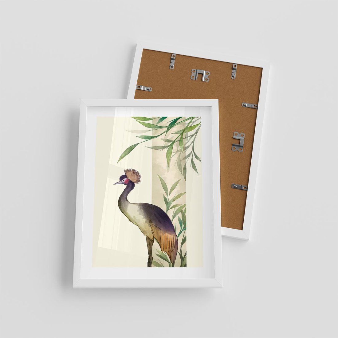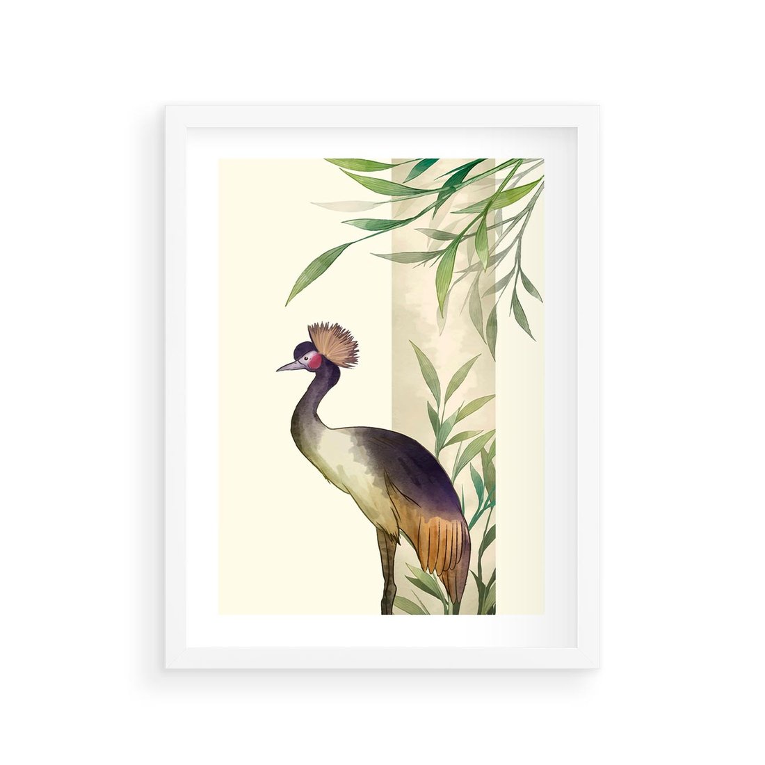 Plakat w ramie 30x40 - Kwiatowa Ekspresja - japońska sztuka, ptak - rama biała