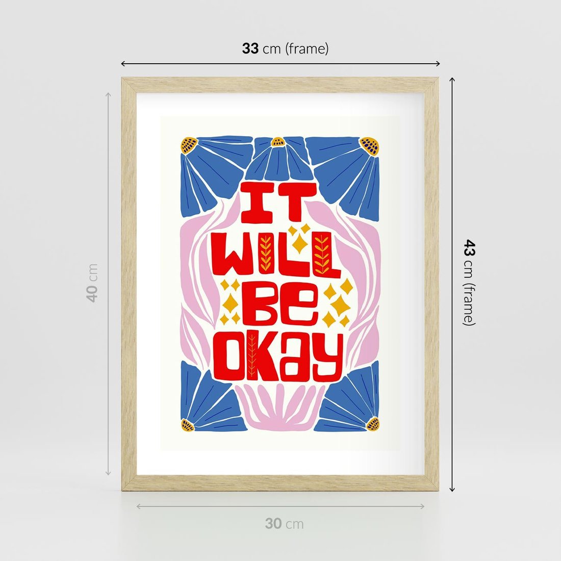 Plakat w ramie 30x40 - Kwiatowa Ekstaza - czerwona pozytywna typografia, kwiatowa kompozycja - rama drewno