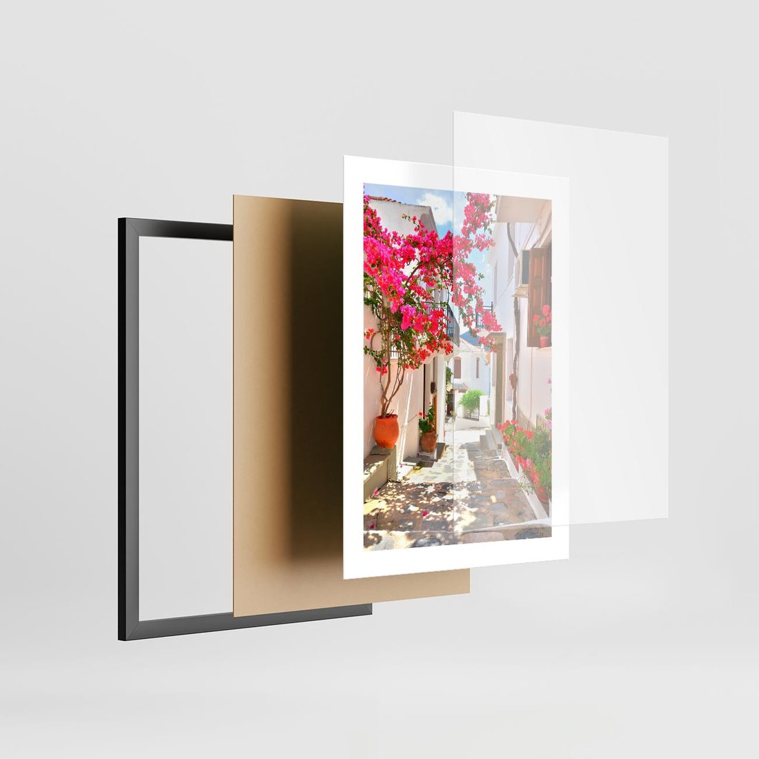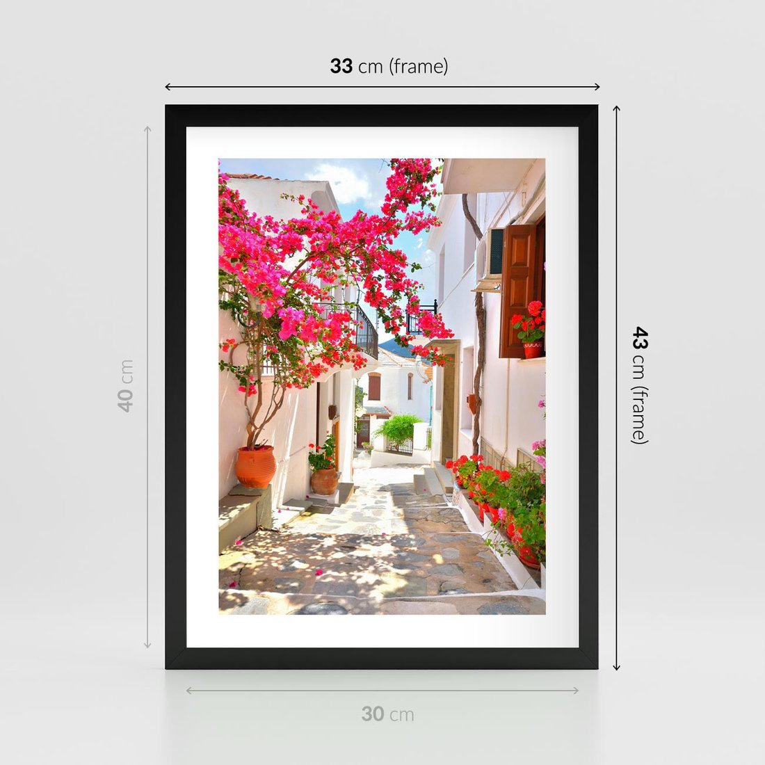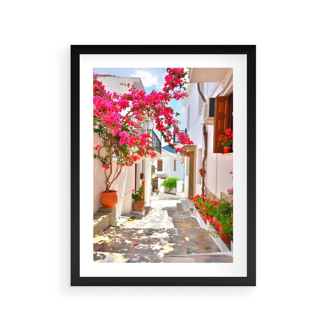 Plakat w ramie 30x40 - Kwiatowa uliczka wakacji - kwiaty, uliczka - rama czarna