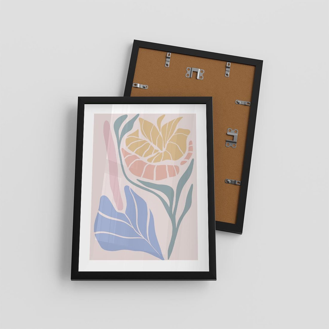 Plakat w ramie 30x40 - Kwiatowe Granice Kształtów - nowoczesny plakat, kwiaty w pastelowych kolorach - rama czarna