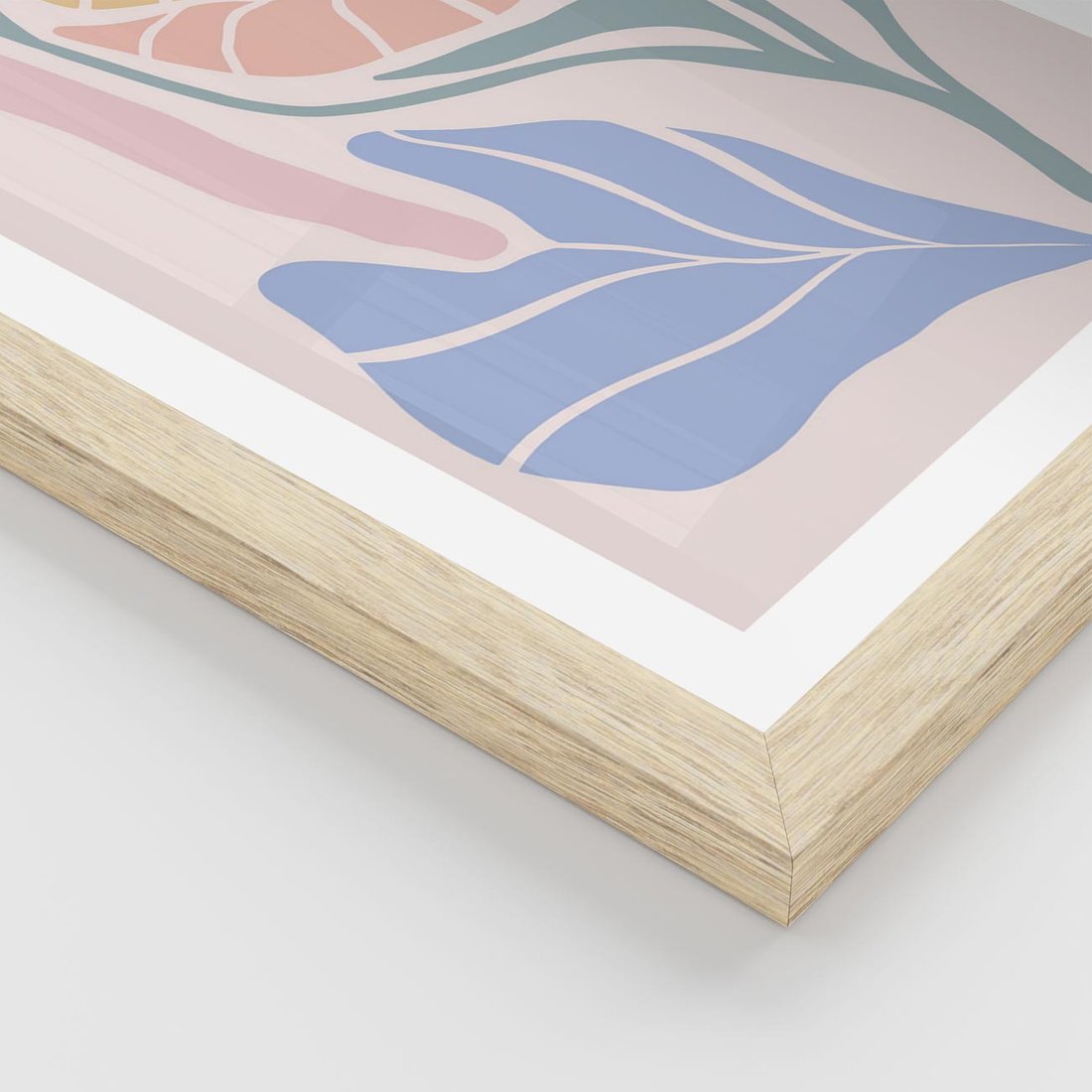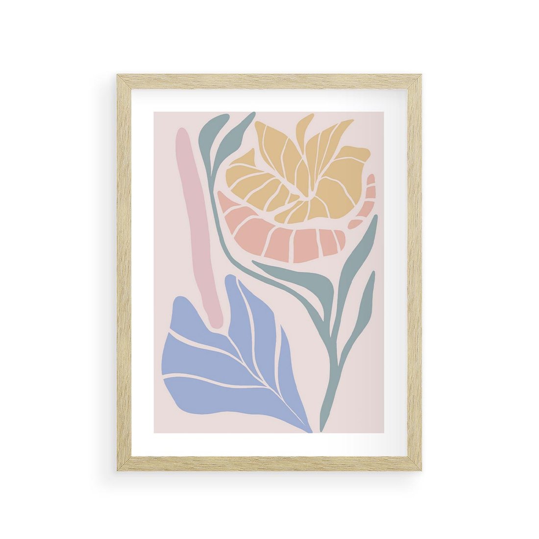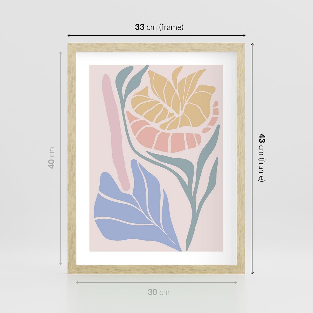 Plakat w ramie 30x40 - Kwiatowe Granice Kształtów - nowoczesny plakat, kwiaty w pastelowych kolorach - rama drewno