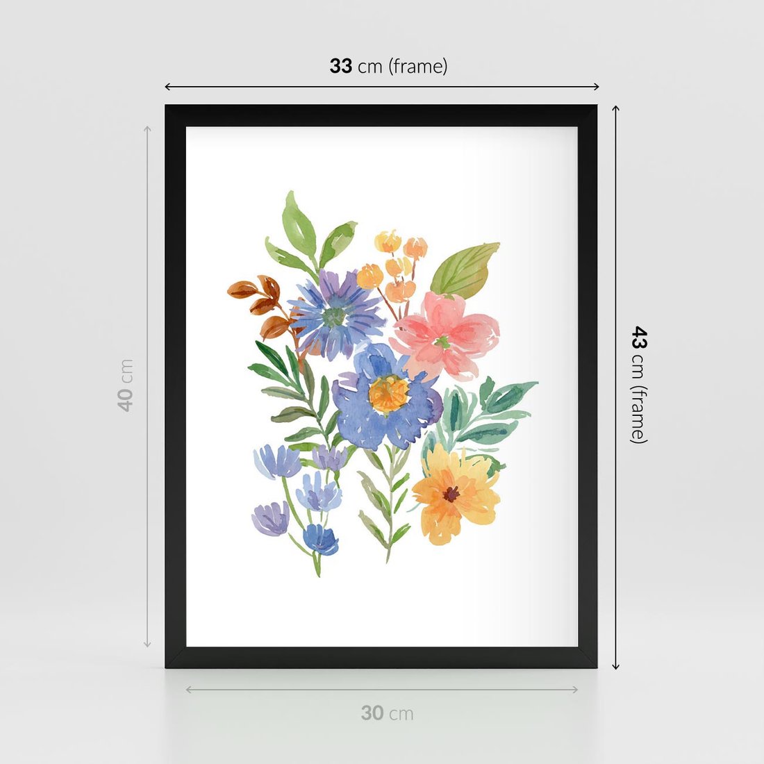 Plakat w ramie 30x40 - Kwiatowe Opowieści - akwarelowe polne kwiaty, minimalistyczna sztuka - rama czarna